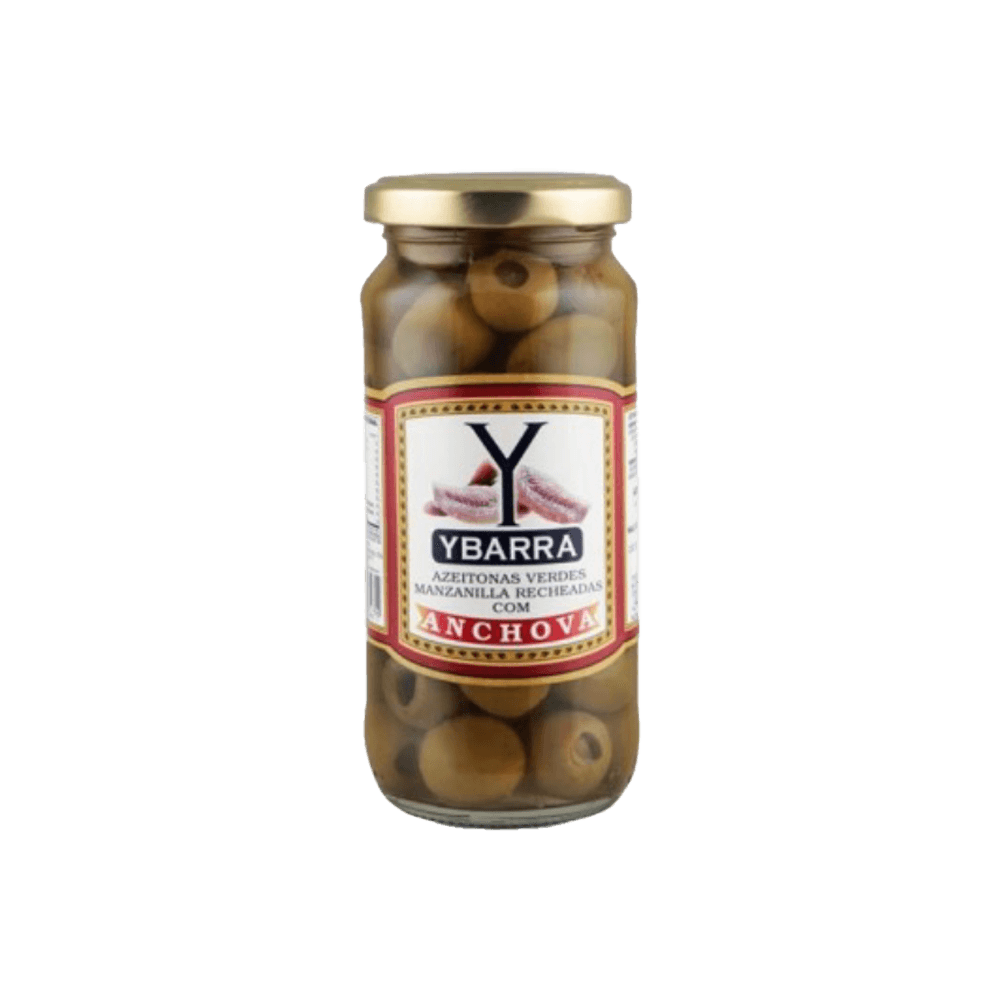 A EMPRESA YBARRA É ESPECIALISTA EM ELABORAR AZEITONAS DE MESA, SOMENTE UTILIZANDO A AZEITONA DA VARIEDADE MANZANILLA SEVILLANA, QUE É EXCLUSIVIDADE DO SUDOESTE DA PROVÍNCIA DE SEVILLA, SENDO APRECIADA PELA SUA CARNOSIDADE, TAMANHO E SABOR. TODA COLHEITA É REALIZADA A MÃO PARA NÃO MACHUCAR O FRUTO, DE MANEIRA QUE SE APRESENTE IMPECÁVEL NO SEU ASPECTO. DEPOIS DE RECOLHIDA A AZEITONA É LIMPA, PESADA E CLASSIFICADA, ENVASADA EM ÁGUA E SAL. PRODUTO DE QUALIDADE SUPERIOR, AZEITONA RECHADA COM ANCHOVA FOI PREMIADA EM 2005 PELO JORNAL NEW YORK TIMES COMO A MELHOR AZEITONA RECHEADA COMERCIALIZADA NO EUA.