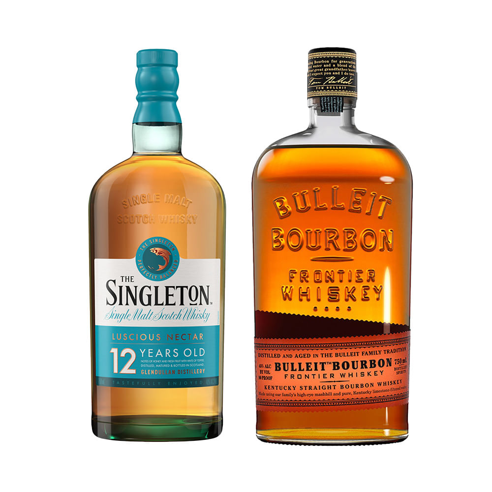 COMBO WHISKY SINGLETON DUFFTOWN 12 ANOS 750ML + WHISKY BULLEIT BOURBON 750ML