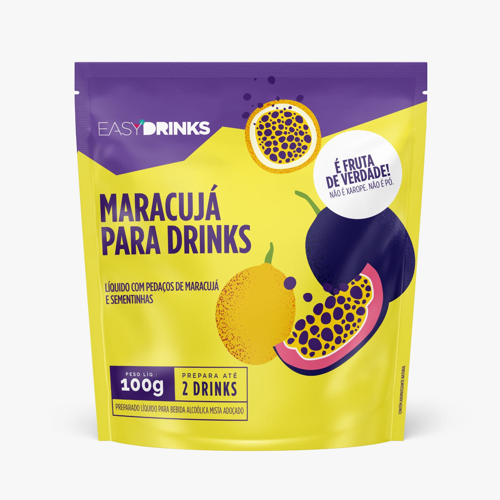 EASY DRINKS MARACUJÁ É FRUTA DE VERDADE (ATÉ COM AS SEMENTINHAS) DE ORIGEM TROPICAL, FICA ÓTIMA COM DRINKS DE VODKA, GINS E WHISKYS.