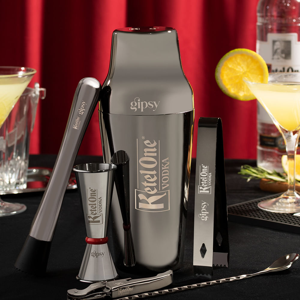 Transforme a sua casa em uma balada VIP com o Kit Home Bar Gipsy Ketel One. Se você é um apaixonado por drinks e adora uma comemoração com os amigos, esse kit é perfeito para você. Com uma parceria de sucesso entre a coleção Gipsy Collabs e a marca premiu