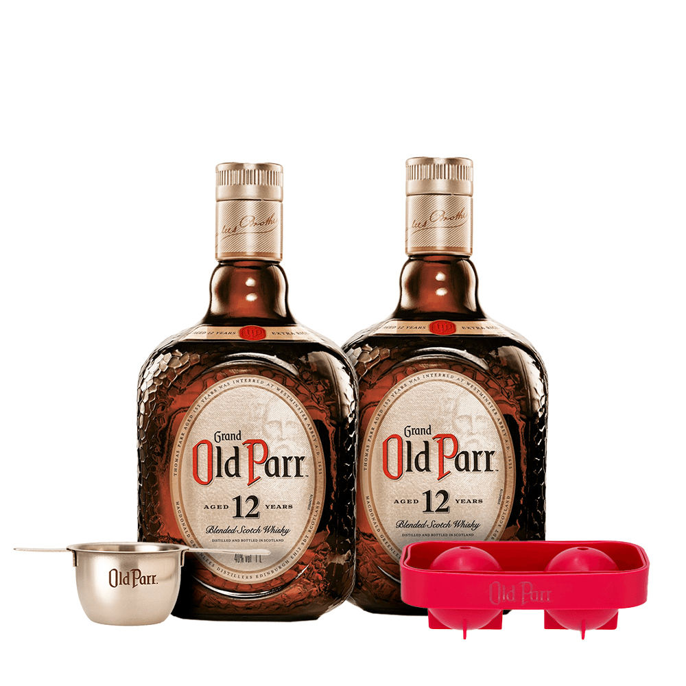 Kit exclusivo com 2 garrafas do icônico Old Parr 12 anos, um whisky escocês envelhecido cuidadosamente para oferecer um paladar suave, encorpado e marcante. Para tornar a experiência ainda mais completa, o kit inclui uma forma de gelo especial, ideal para realçar o aroma e preservar o sabor do whisky, e um dosador metálico que garante precisão no servir — perfeito para quem valoriza cada detalhe.