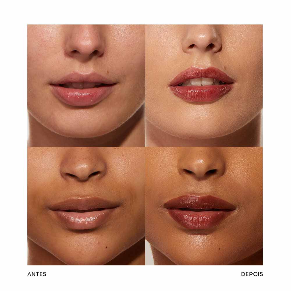 Este produto não apenas melhora a aparência dos seus lábios instantaneamente mas também cuida deles ao longo do tempo.