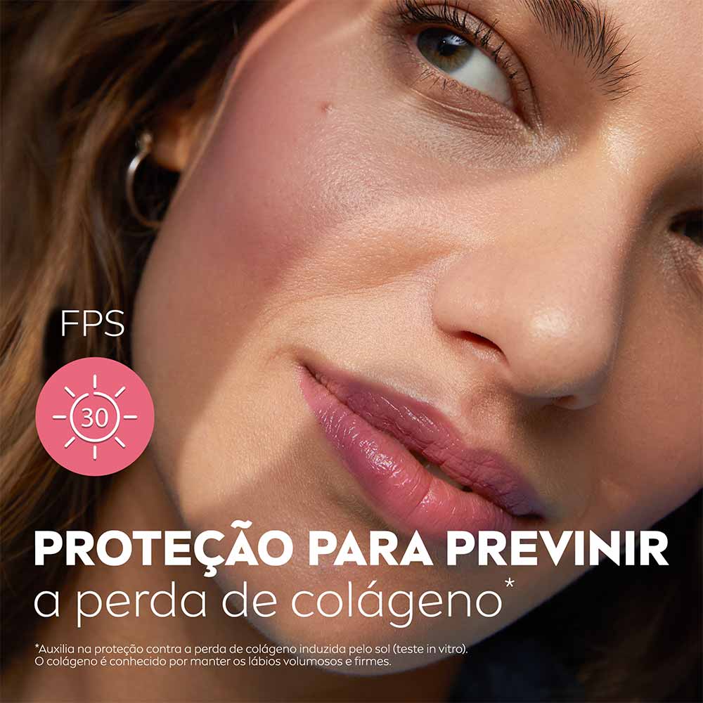NIVEA Hidra Color vai muito além da beleza, promovendo hidratação de longa duração e protegendo os lábios do ressecamento e contra raios UVA/UVB com FPS 30. Possui uma cremosidade que desliza de maneira fácil e uniforme, com acabamento intenso. Ajuda a proteger contra a perda de colágeno nos lábios.*