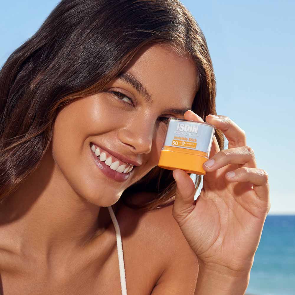 ISDIN Invisible Stick FPS 50, é um protetor solar facial em bastão com ação antioxidante e hidratante com fácil aplicação, textura agradável e acabamento invisível. O Stick pode proteger rápida e facilmente as zonas da pele mais sensíveis aos raios solares, como as manchas, as cicatrizes e os lábios e está indicado para proporcionar uma elevada proteção UVB/UVA nas zonas mais sensíveis da pele expostas ao sol.