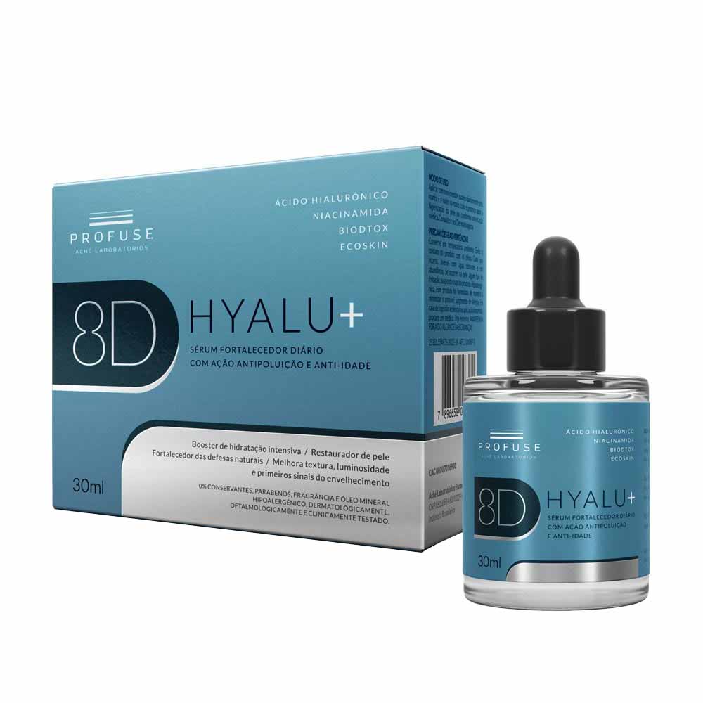 Sérum Hidratante Fortalecedor Profuse 8D Hyalu+ O que é e para que serve? O 8D Hyalu+ é um inovador sérum hidratante e fortalecedor desenvolvido especialmente para quem busca revitalizar e proteger a pele contra os danos diários. Projetado para atuar profundamente, ele é ideal para todos os tipos de pele, oferecendo uma textura leve e de rápida absorção. Com sua fórmula vegana e livre de parabenos, conservantes, óleo mineral e fragrâncias, este sérum é perfeito para quem busca produtos eficazes e conscientes. É um sérum avançado que visa recuperar a saúde da barreira cutânea, combatendo os principais efeitos do expossoma na pele. Enriquecido com oito tipos de ácido hialurônico, ele promove hidratação em várias camadas da pele, garantindo uma aparência mais jovem e saudável. Além disso, sua composição conta com ativos poderosos como a niacinamida, que repara o DNA cutâneo e estimula a síntese de colágeno, e o BioDtox, que oferece proteção antipoluição essencial para quem vive em áreas urbanas. Quais os Benefícios do Profuse 8D Hyalu+? - Hidratação profunda; - Proteção antipoluição; - Equilíbrio do bioma cutâneo; - Antioxidante poderoso; - Textura leve e rápida absorção. Modo de Uso: 1 . Aplique o sérum diariamente pela manhã e à noite. 2. Após a higienização da pele, utilize movimentos suaves para espalhar o produto no rosto, colo e pescoço. 3. Para resultados personalizados, siga também a orientação de um dermatologista. 8D Hyalu+ é indicado para todos os tipos de pele? Sim, o 8D Hyalu+ é formulado para todos os tipos de pele, graças à sua textura leve e rápida absorção. Seja qual for o seu tipo de pele, você pode desfrutar de seus benefícios sem se preocupar com oleosidade ou resíduos indesejados.