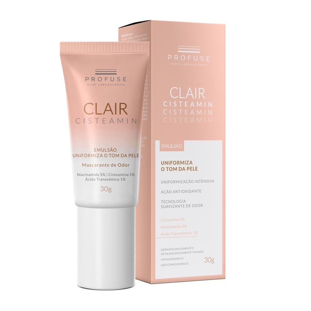 O Clair Cisteamin Profuse é um revolucionário uniformizador de pele desenvolvido especialmente para aqueles que buscam uma solução eficaz contramarcas escurecidas.