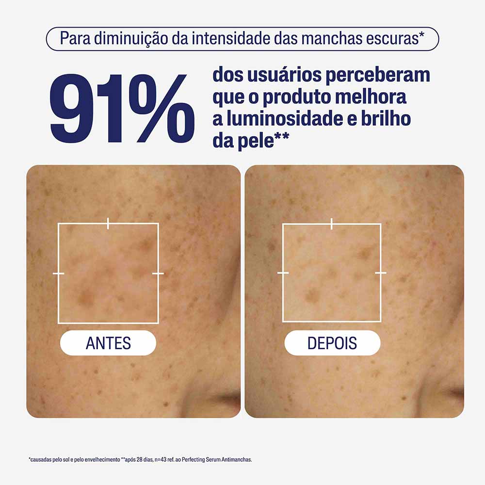 A presença de Niacinamida e outros ativos como Glicerina e Ácido Hialurônico Hidrolisado garante uma pele macia e profundamente hidratada.