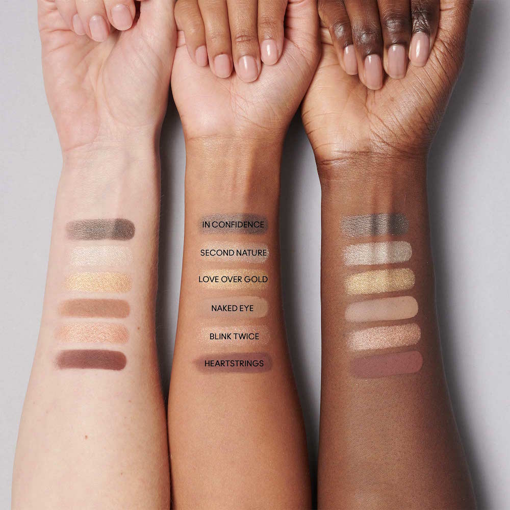 Atreva-se com essa paleta de sombras com seis cores neutras que proporcionam cor em uma só passada para criar looks ilimitados, de minimalistas a extremos.