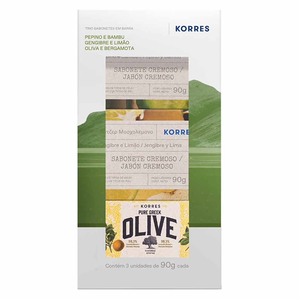 Kit Sabonete em Barra Korres Pepino e Bambu, Gengibre e Limão Oliva e Bergamota