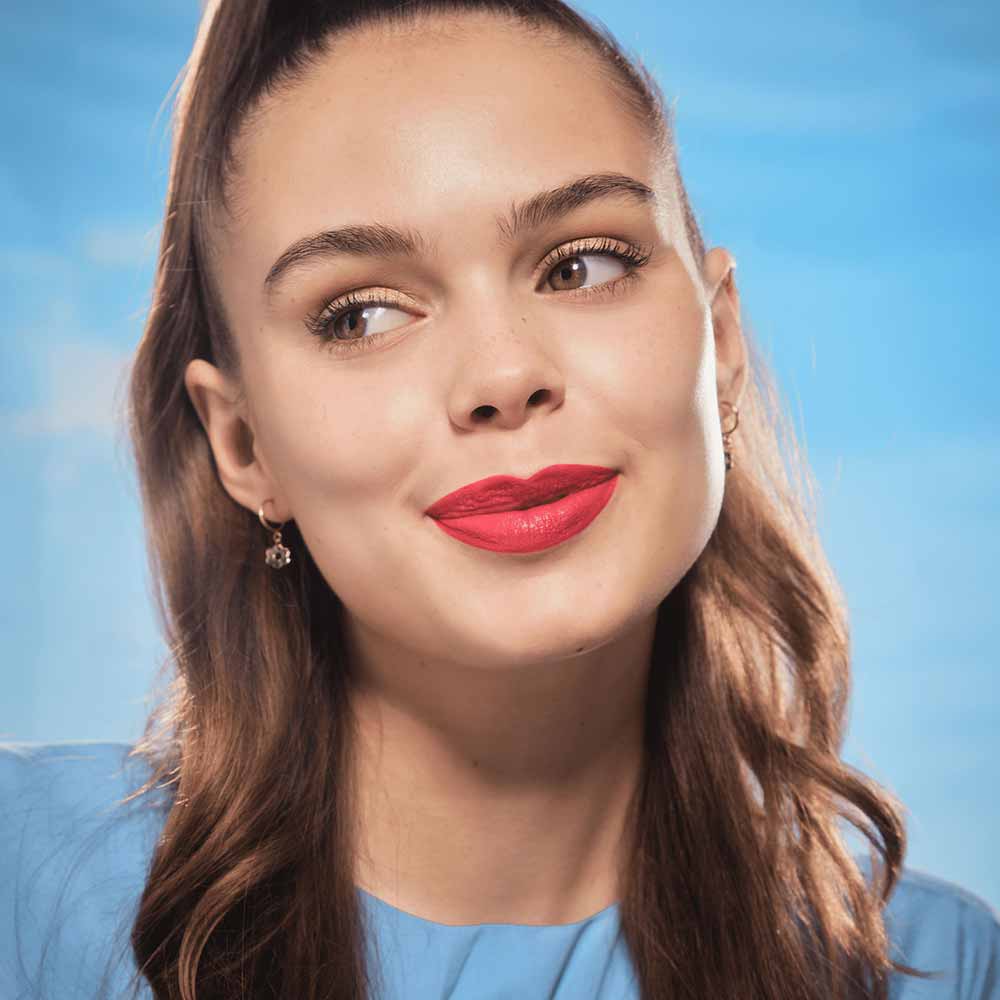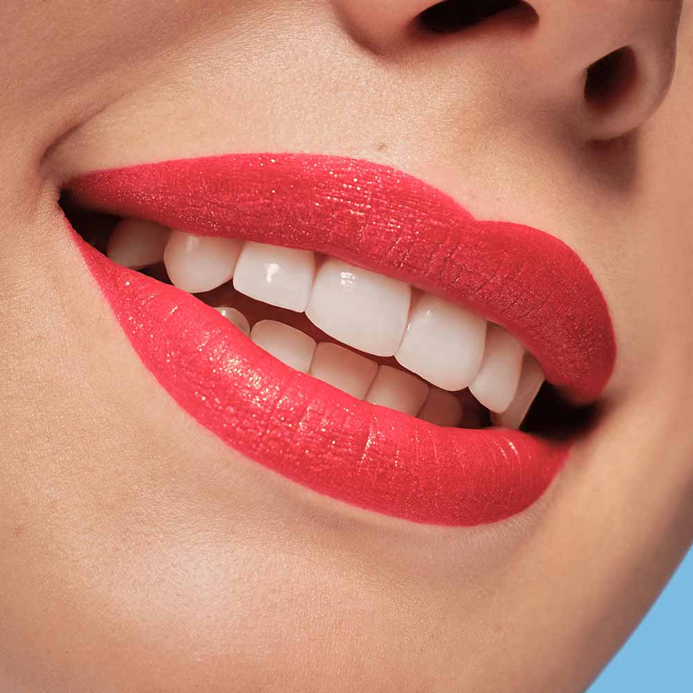 Passe o batom e ao precionar os lábios, um toque de glitter deslumbrante é revelado. Disponível em três tonalidades: violeta, nude e vermelho.
