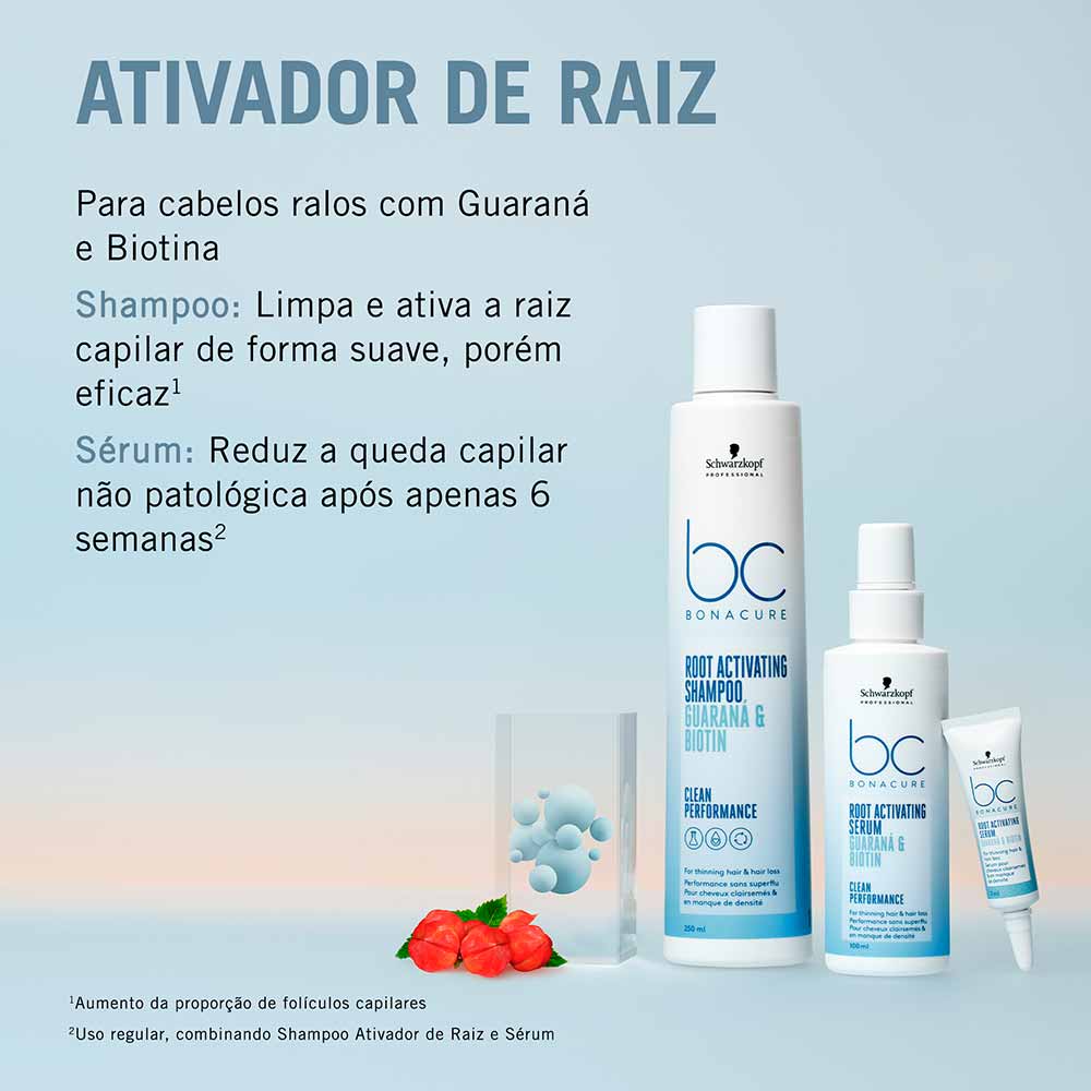 O Sérum Schwarzkopf Professional Bonacure Root Activating contém uma combinação poderosa de ingredientes ativos que atuam diretamente na raiz do cabelo, promovendo a ativação dos folículos capilares e incentivando o crescimento saudável dos fios.