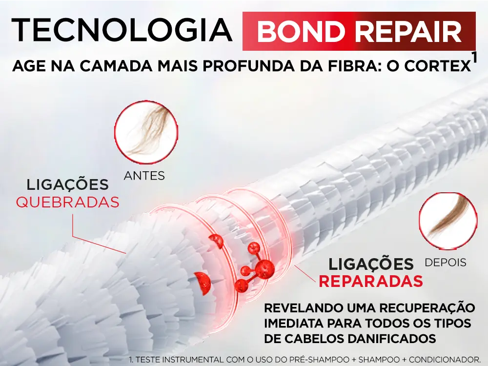 Todos os produtos do Kit Bond Repair contam com o Ácido Cítrico como principal ativo. Este ingrediente poderoso penetra profundamente no córtex capilar, recriando as ligações capilares danificadas e promovendo uma reparação efetiva e duradoura.