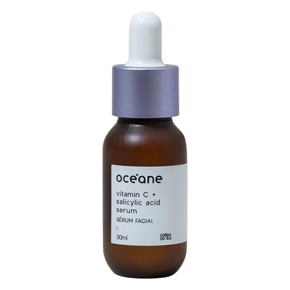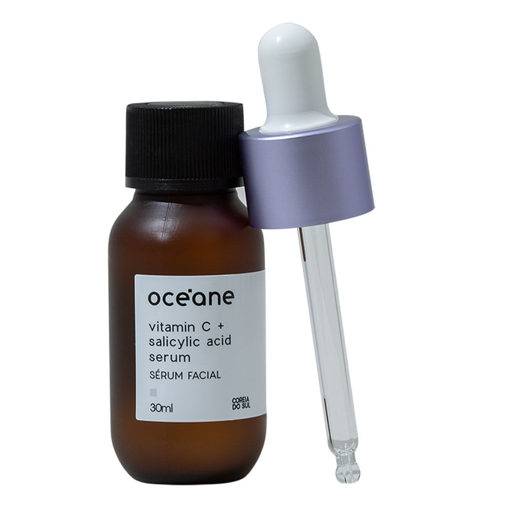 SERUM FACIAL - VITAMIN C AND SALICYLIC ACID Este serúm traz uma combinação poderosa de vitamina C e ácido salicílico, ativos que ajudam na renovação da pele. A vitamina C previne e trata sinais de envelhecimento. Ela ajuda a suavizar rugas, linhas de expressão e uniformizar a tonalidade, ao clarear manchas e iluminar. Também proporciona uma textura mais firme. Já que o ácido salicílico ajuda a suavizar poros dilatados e a controlar o nível de oleosidade. De rápida absorção, este sérum é o aliado perfeito para deixar a pele com textura uniforme e um toque de luminosidade. Indicado para peles normais e oleosas. Como usar: Com a pele já limpa, aplique o sérum no rosto na parte da manhã, fazendo movimento de baixo para cima e de dentro para fora, até que o produto seja totalmente absorvido. Recomendamos o uso de um protetor solar em conjunto com o sérum. Indicado para uso diário. Com ação antioxidante, ajuda a prevenir o envelhecimento da pele e a suavizar poros dilatados. Cuidados: USO EXTERNO. EM CASO DE IRRITABILIDADE, SUSPENDA O USO E PROCURE AUXÍLIO MÉDICO. NÃO APLICAR NA REGIÃO DOS OLHOS. EM CASO DE CONTATO COM OS OLHOS, LAVE IMEDIATAMENTE COM ÁGUA. MANTENHA FORA DO ALCANCE DE CRIANÇAS. Sobre a Marca: A marca brasileira Océane foi criada para realçar o estilo da mulher conectada e de atitude, apaixonada por tudo relacionado à beleza e moda. Os produtos da marca trazem praticidade, alta tecnologia e fórmulas poderosas para facilitar o dia a dia da mulher moderna. A Océane acredita que toda mulher tem o poder transformador e a força de ser a protagonista de sua vida, para descobrir seu próprio encanto. Por isso desenvolve maquiagens, esmaltes e acessórios que valorizam a beleza e despertam a autoestima de seu público.