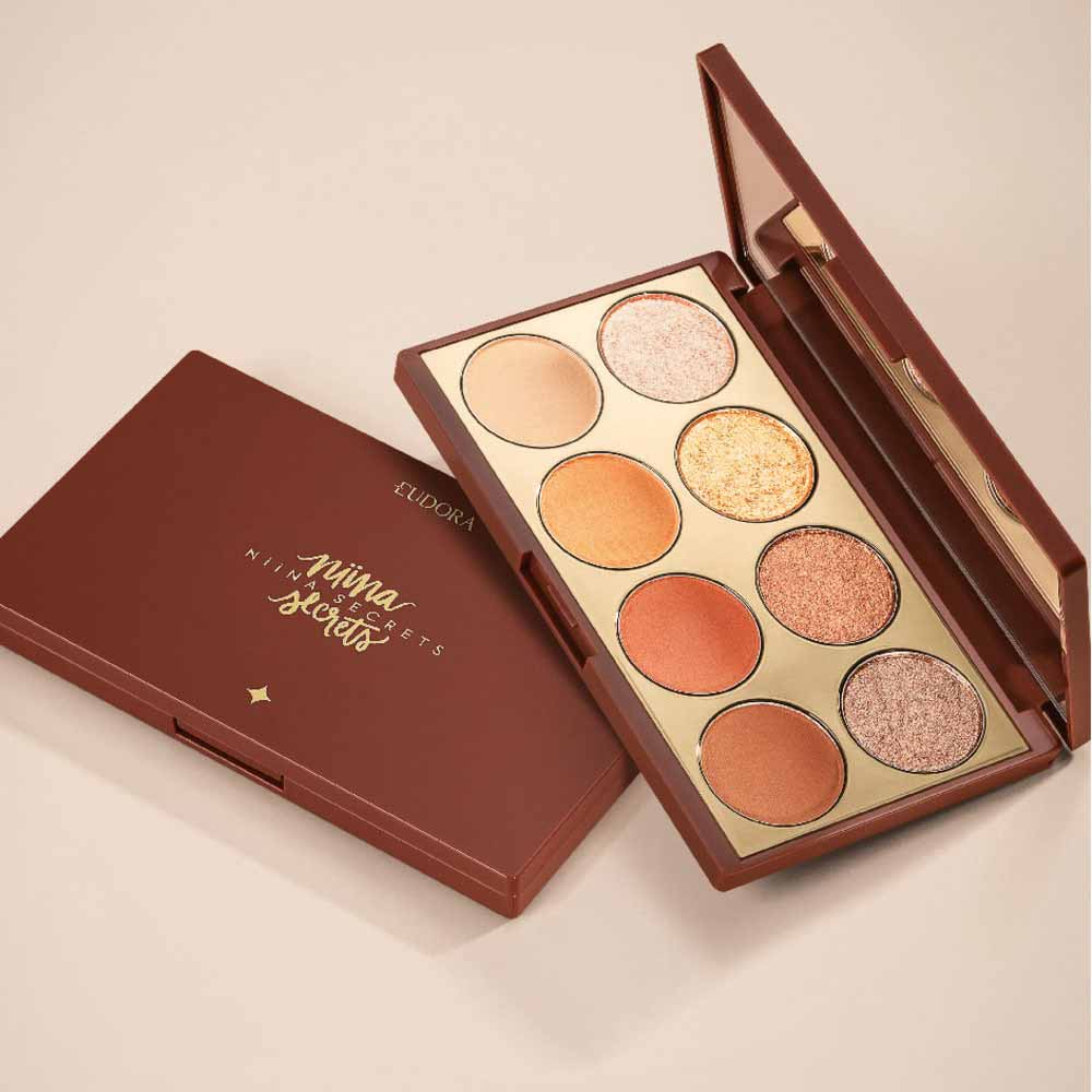 A Paleta de Sombras Niina Secrets by Eudora Neutrals é uma paleta versátil composta por 8 cores intensas, divididas em 4 tons matte e 4 brilhantes.