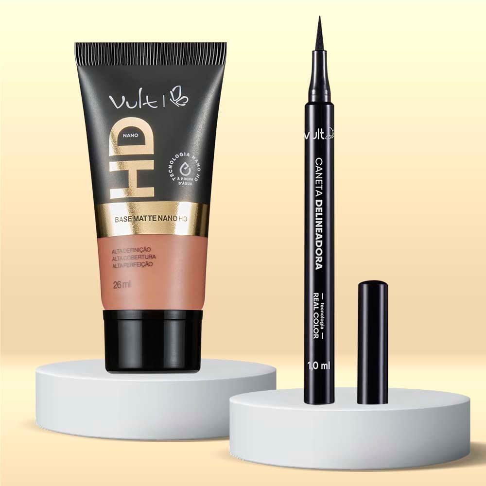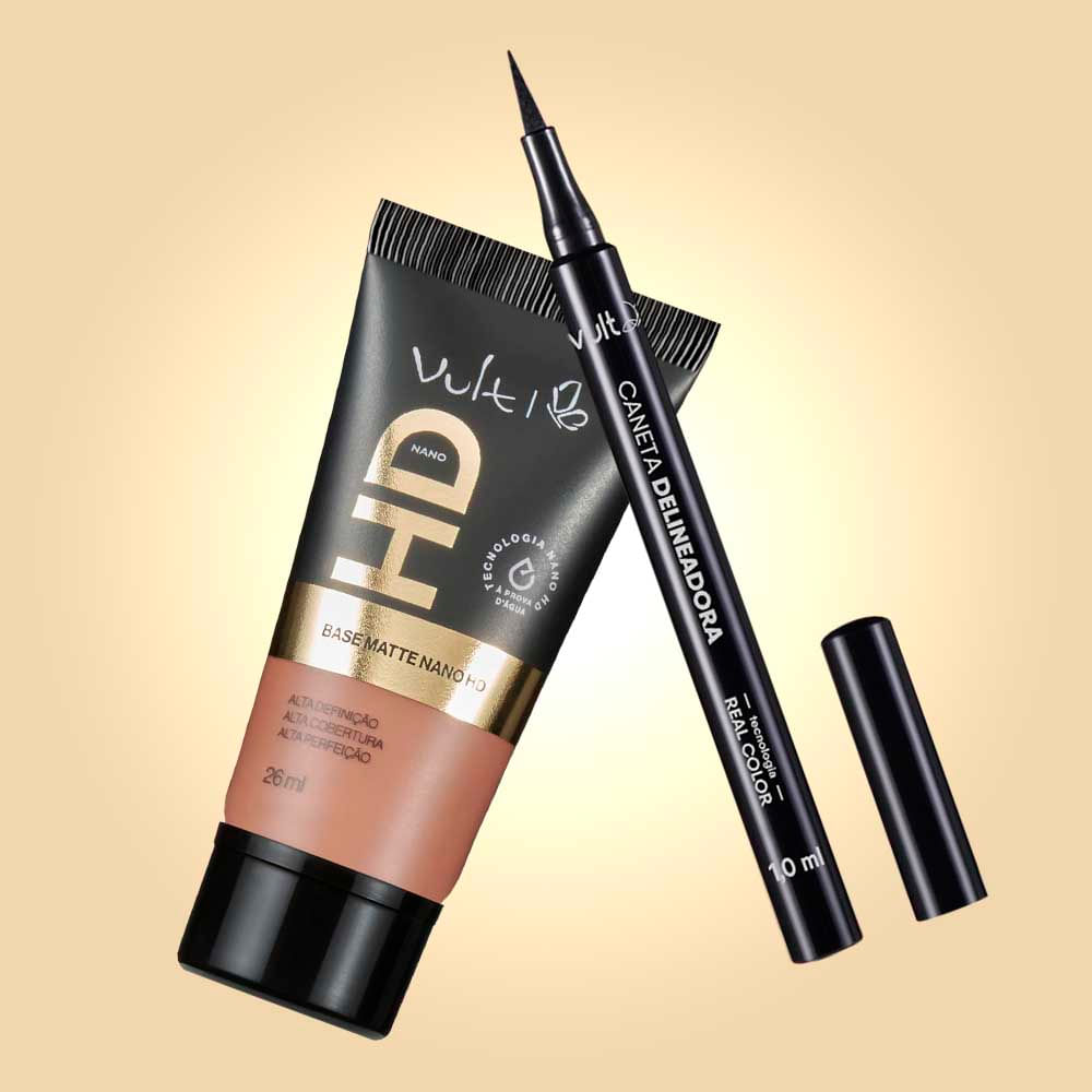 O Vult Kit - Base Líquida Nano HD V280 + Caneta Delineadora Preto é um conjunto essencial para quem adora maquiagem e busca um acabamento impecável.