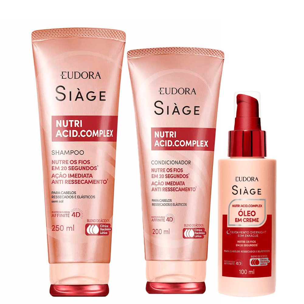 Eudora Siàge Nutri Acid.Complex Kit – Shampoo + Condicionador + Óleo em Creme