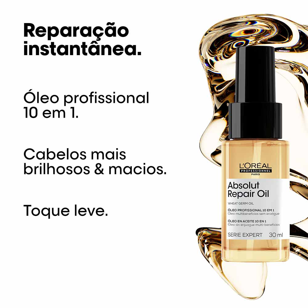 O Óleo 10 em 1 L'Oréal Professionnel Absolut Repair Multibenefícios Travel Size é indicado para todos os tipos de cabelo, especialmente aqueles sensibilizados por processos químicos ou exposição excessiva ao calor. Seja qual for seu tipo ou curvatura, este óleo proporciona restauração eficiente sem pesar ou deixar resíduos oleosos.