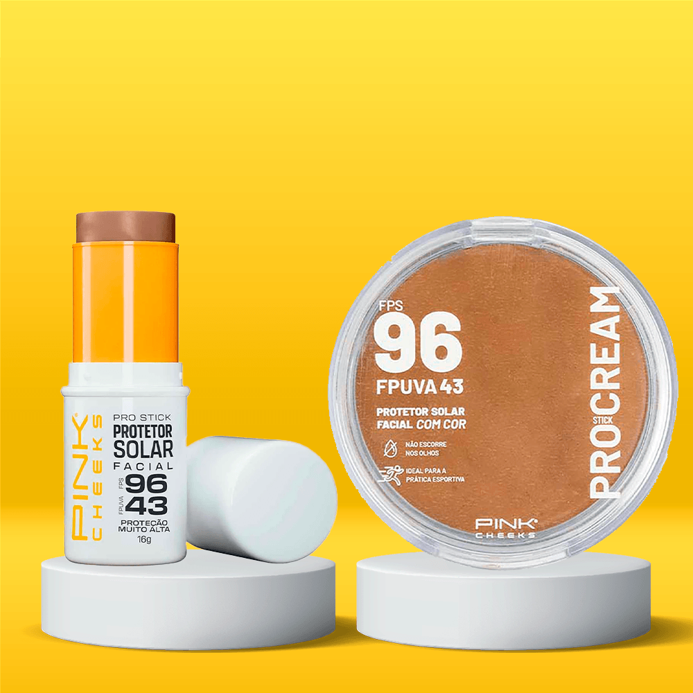 Kit Protetor Solar Pink Cheeks - Pro Stick Pro30 Multifuncional com Cor + Pro Cream FPS96 para Pele Clara