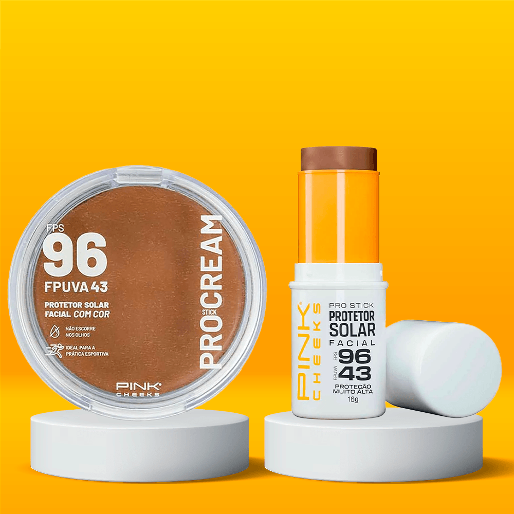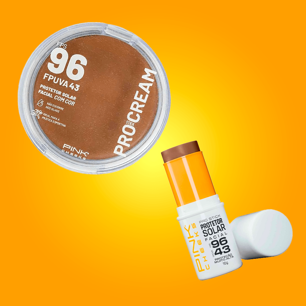 Kit Protetor Solar Pink Cheeks - Pro Stick Pro40 Multifuncional com Cor + Pro Cream FPS96 para Pele Preta Clara