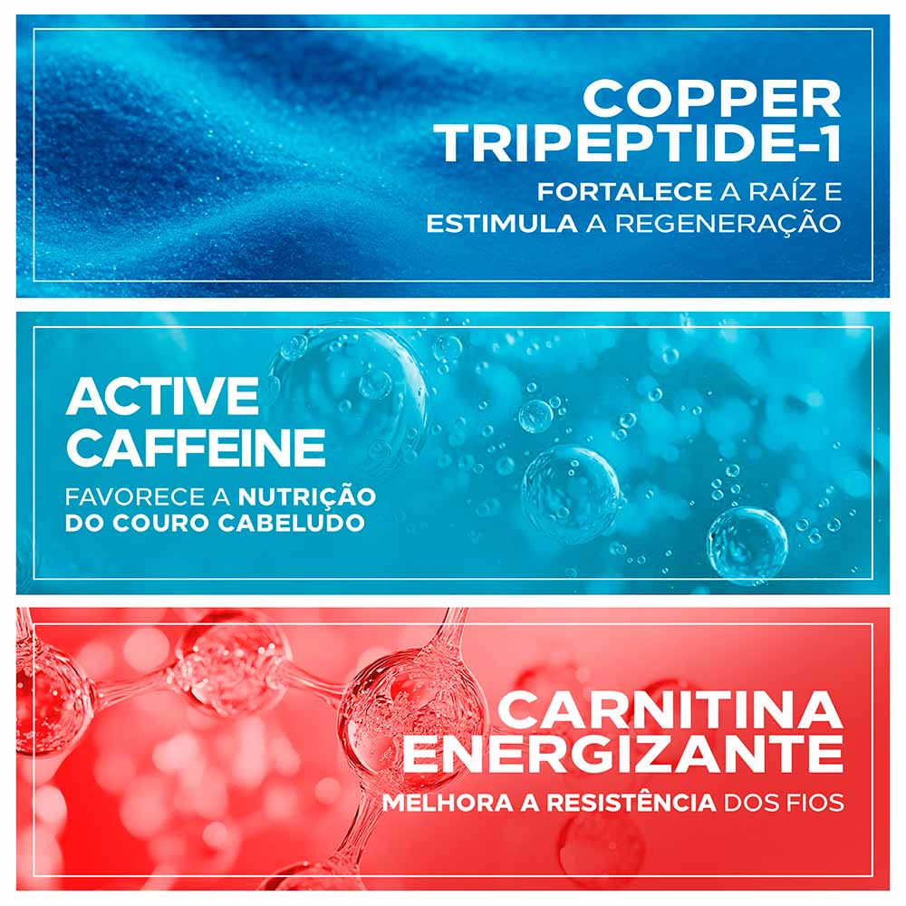 - Active Cafeína Anti-Queda: Promove microcirculação eficaz no couro cabeludo para nutrir os folículos pilosos e auxiliar maior oxigenação local.