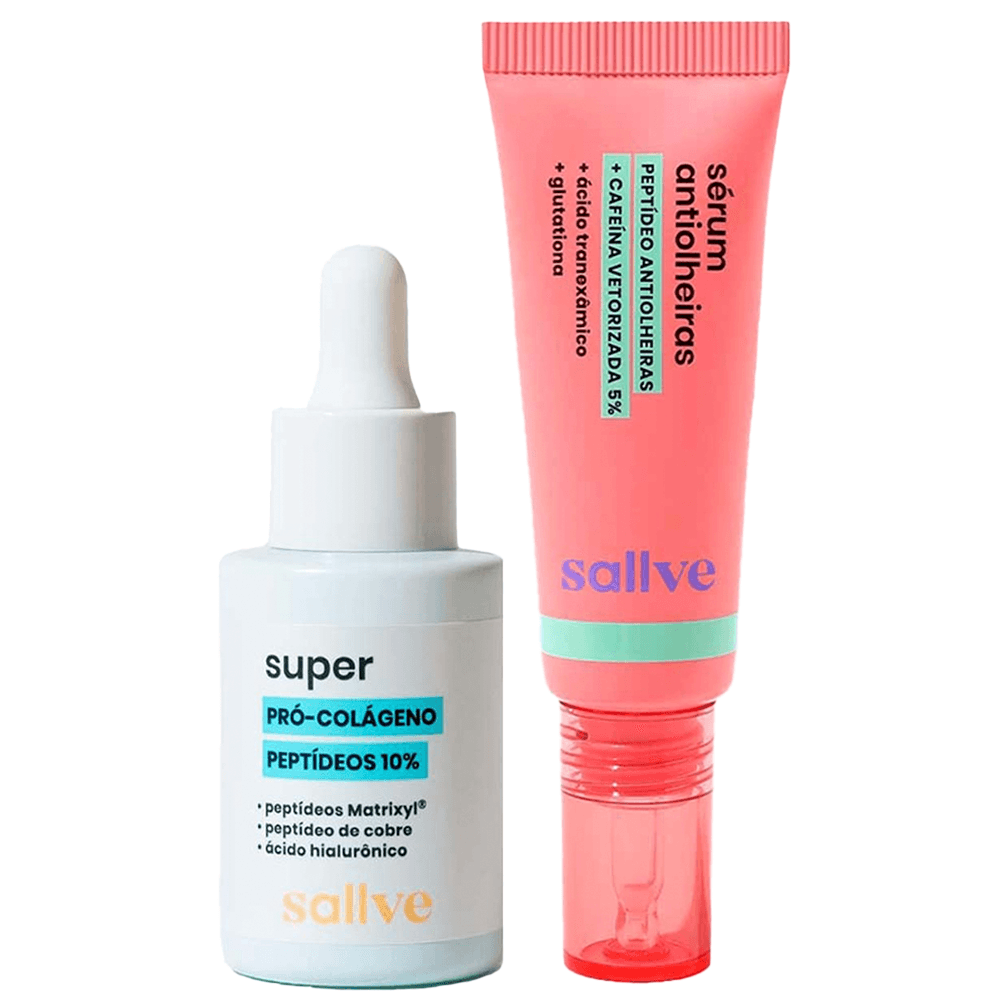 Sallve Kit - Sérum Antiolheiras + Sérum Facial Super Pró colágeno Peptídeos 10%