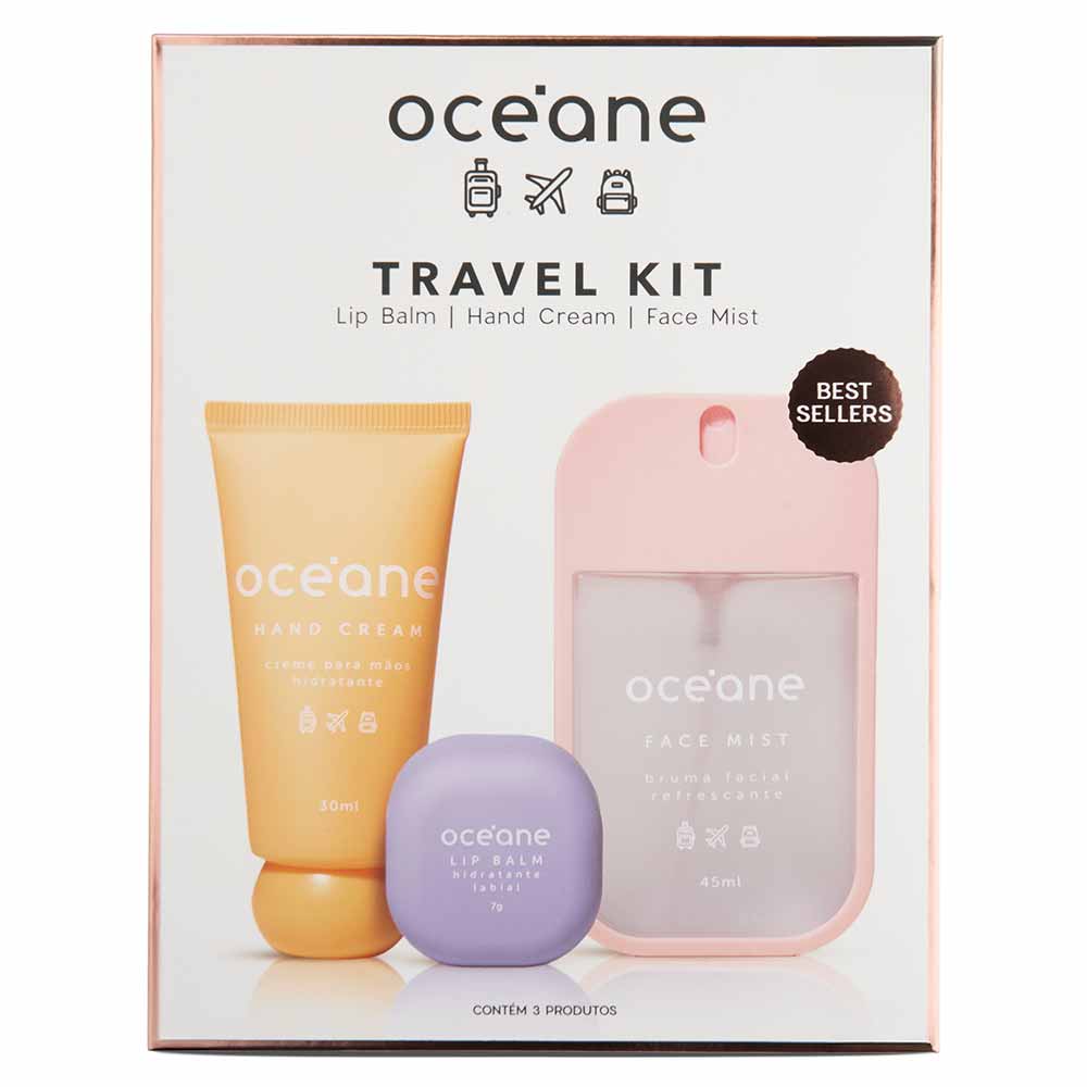Océane Essencial Travel Kit - Creme de Mão + Bruma Facial + Bálsamo Labial