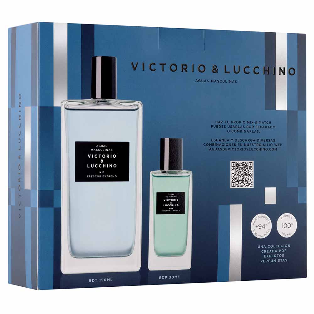 Victorio & Lucchino é uma marca espanhola que possui mais de 25 anos de expertise na criação de fragrâncias no mercado europeu. As forças da natureza alinham-se à masculinidade, descobrindo a sua versão mais intensa, sóbria e extrema através das melhores matérias-primas. A marca utiliza mais de 94% de ingredientes naturais em suas fragrâncias e demonstra preocupação com a sustentabilidade através das fórmulas 100% veganas, embalagens com certificação FSC (embalagens provenientes de bosques gerenciados de forma sustentável) e o respeito com a sua pele. A coleção Aguas é sinônimo de qualidade e inspiração criativa, oferecendo a seus consumidores uma proposta inovadora que permite combinar e criar sua fragrância personalizada através do conceito de Mix & Match.