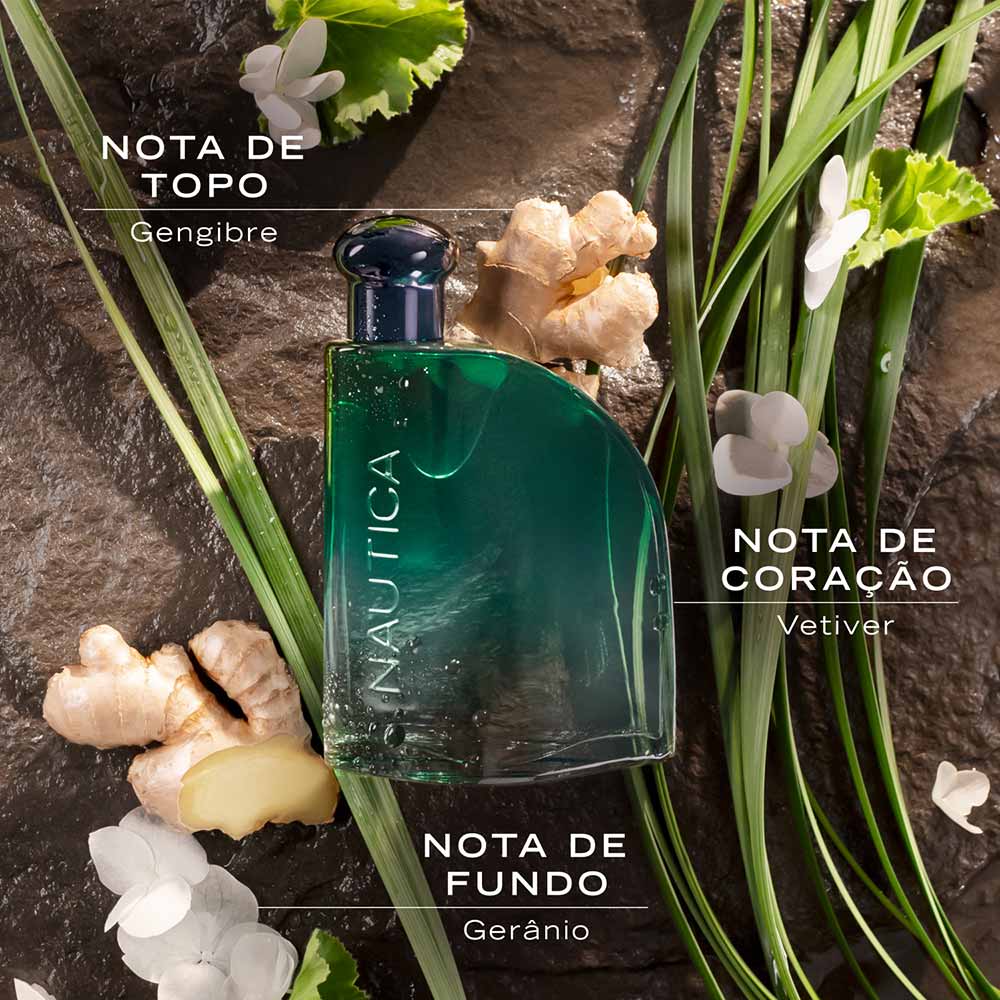 O perfume é um fougere amadeirado com nota de topo composta por: gengibre; nota de coração: vetiver; e por fim, nota de fundo: gerânio. Desde sua criação, Nautica sempre esteve enraizada na cultura costeira e em suas comunidades criativas. Existe uma sensação de equilíbrio onde o mar encontra a terra, e a abundância de recursos nesse ponto de encontro contribui para uma atmosfera acolhedora. Com Nautica, você se sente revigorado e pronto para aproveitar o lazer — seja em uma trilha rumo ao próximo mirante, pegando ondas ou relaxando ao redor da fogueira na praia. Confira a linha completa de Nautica Colors.