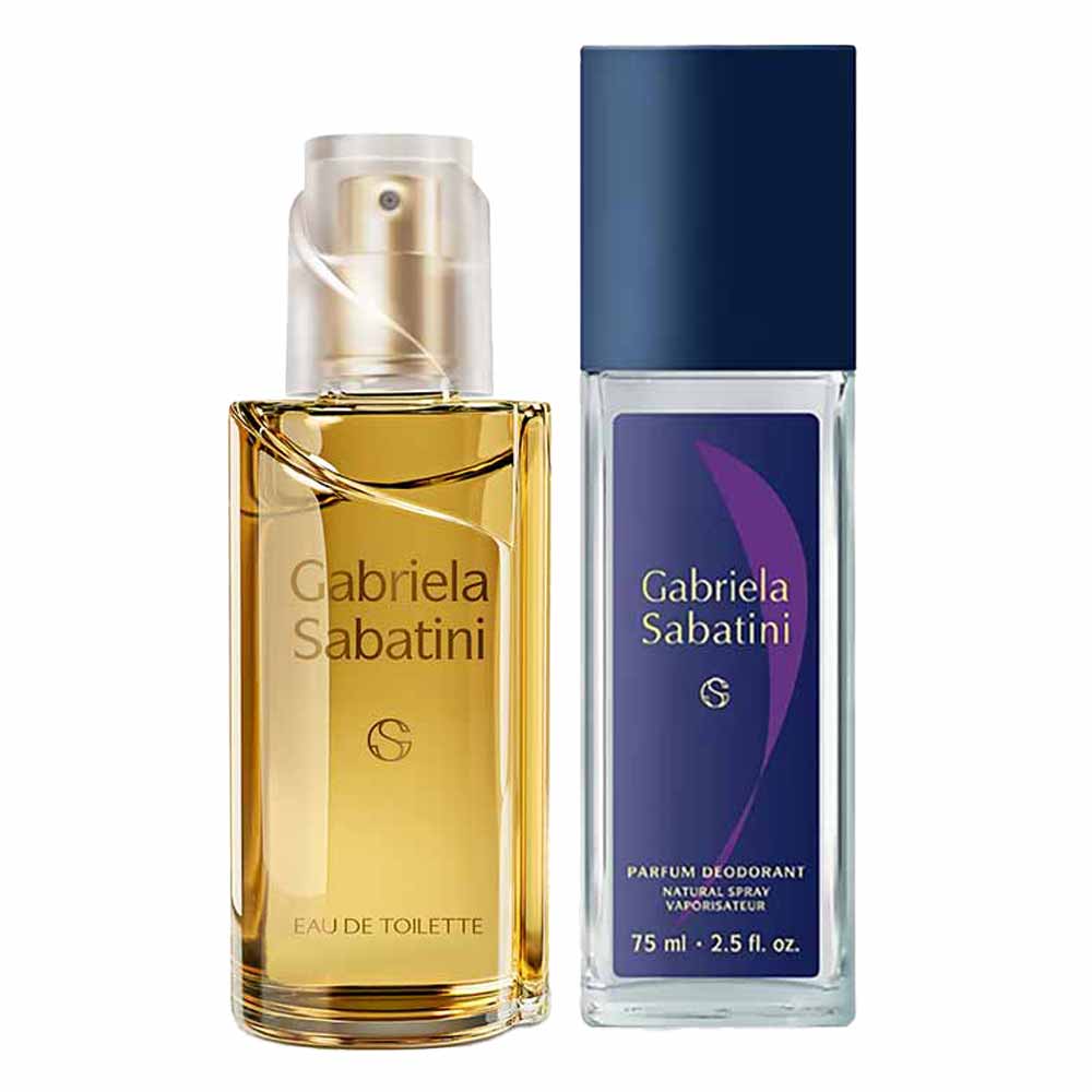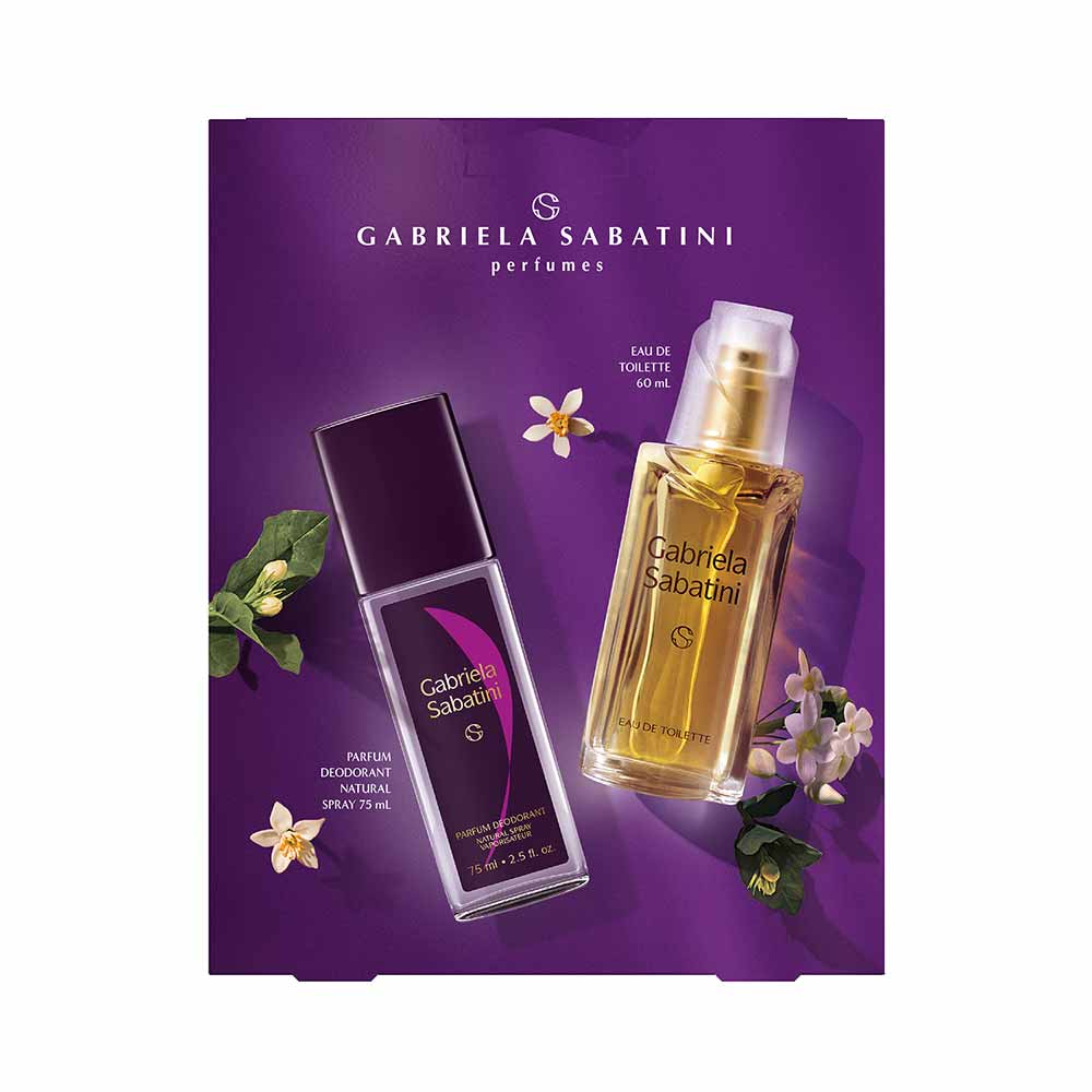O kit conta com um perfume Gabriela Sabatini Eau de Toilette 60ml e um Body Splash de 75ml. O kit possui uma fragrância feminina floral ambarada, sexy e autêntica, criado para mulheres confiantes em si e que gostam de tomar decisões.
