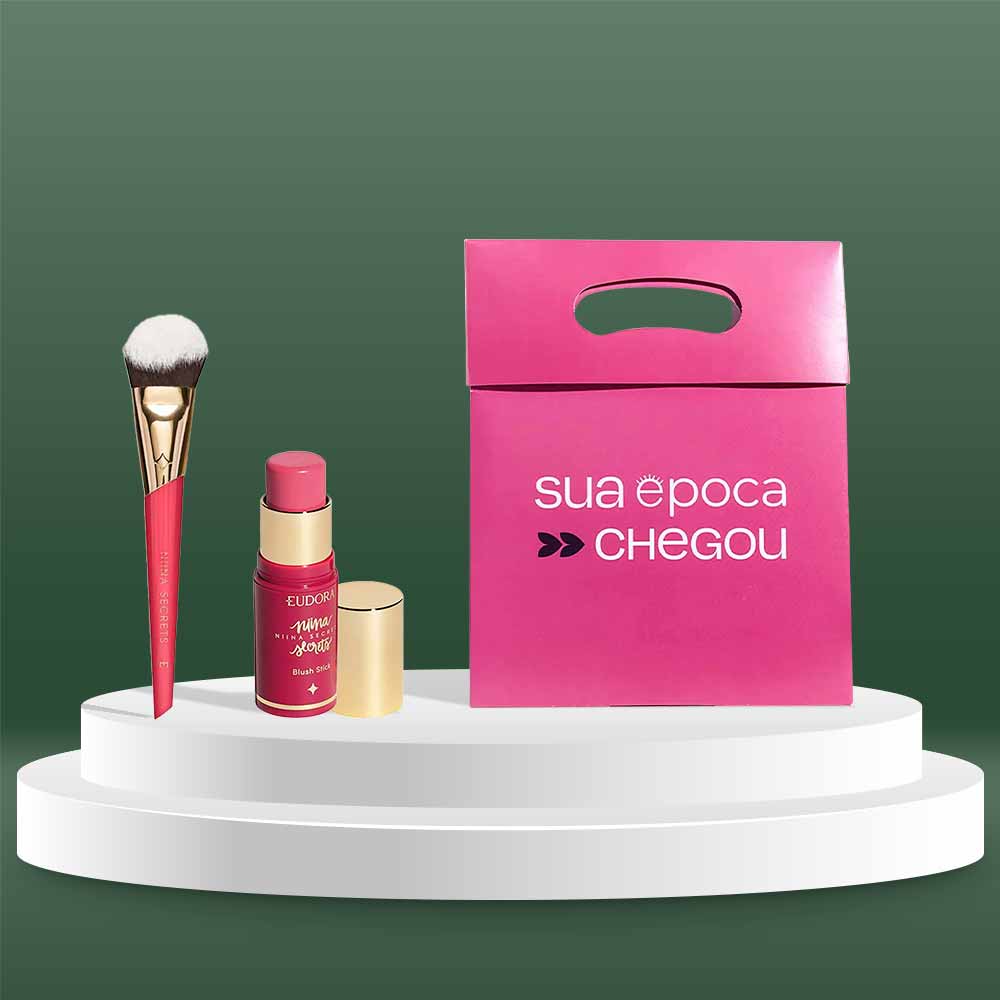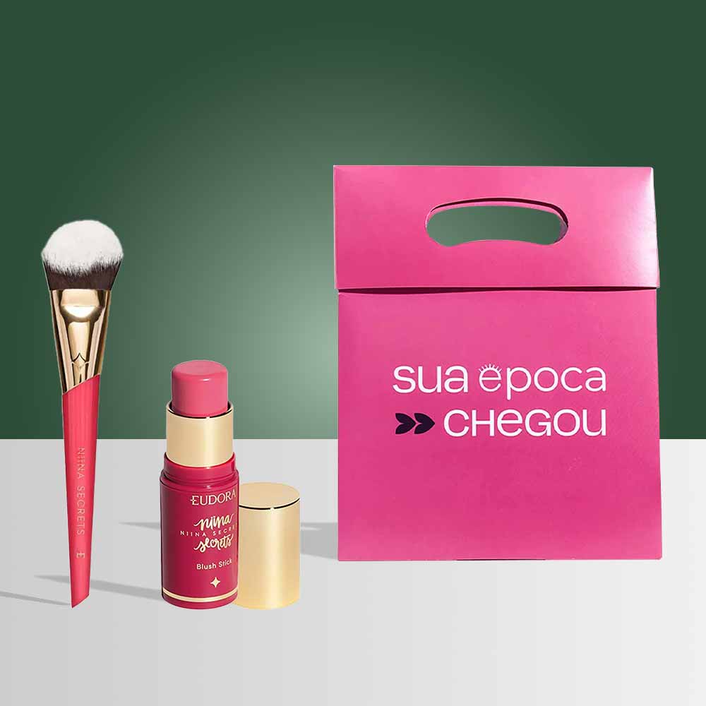 Kit de Natal Niina Secrets - Pincel Multifuncional + Blush Stick + Sacola Presenteável