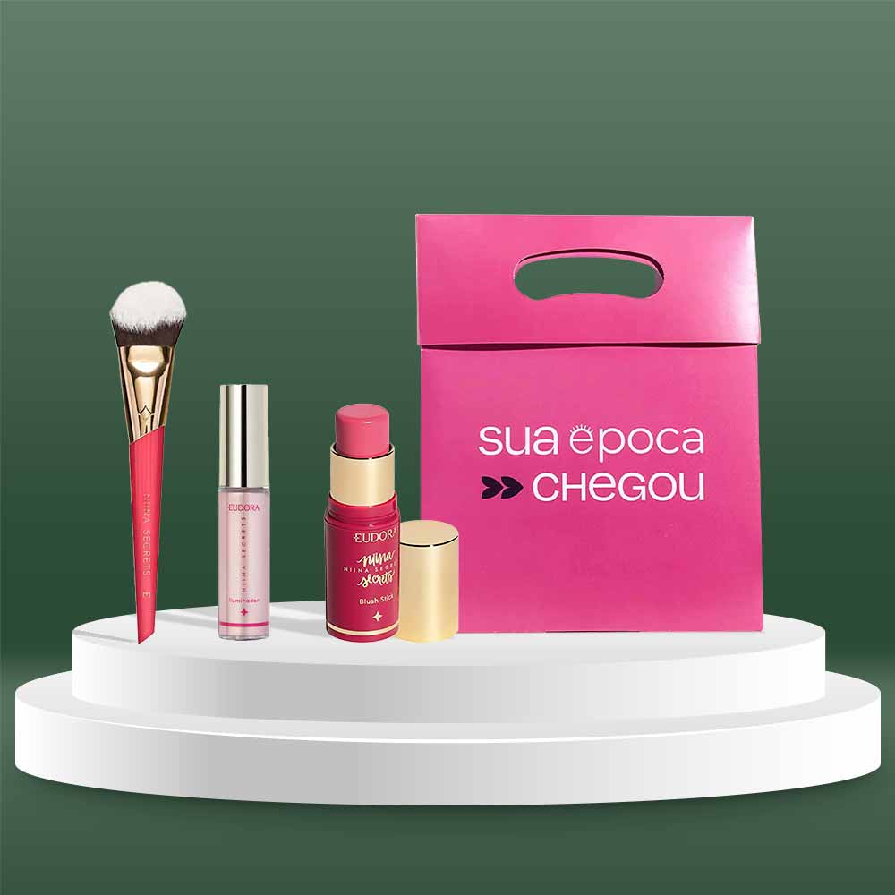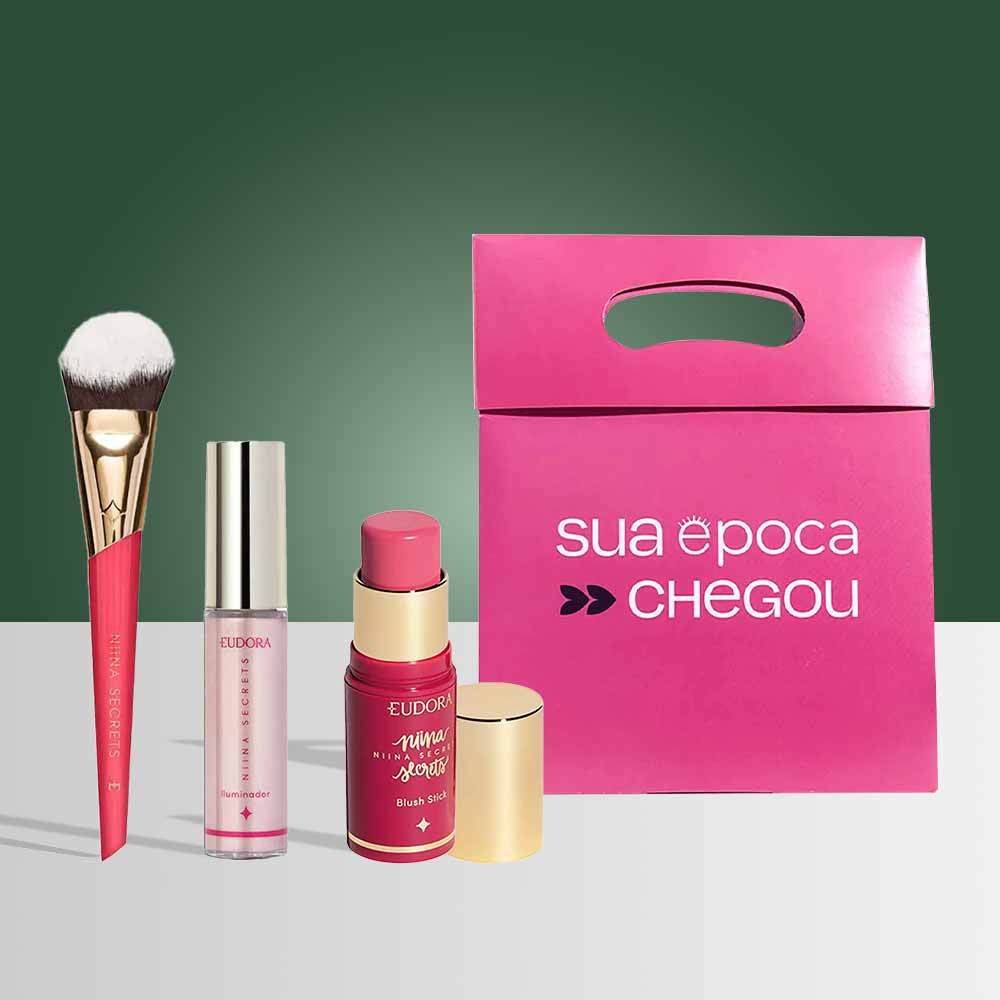 O Kit de Natal Eudora é um conjunto exclusivo de produtos desenvolvidos para realçar e iluminar a sua beleza com praticidade. Composto pelo Iluminador Líquido Niina Secrets by Eudora Luminous, Pincel Multifuncional Eudora by Niina Secrets, Blush Stick Niina Secrets by Eudora Daily e uma Sacola Presenteável da Época Cosméticos, este kit é perfeito para fãs de beleza que desejam um acabamento profissional e sofisticado.