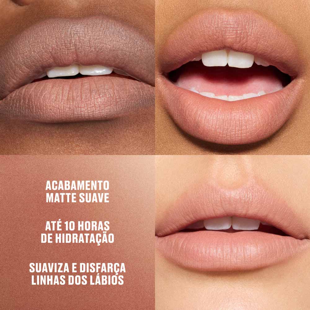 Sua fórmula exclusiva proporciona cor aveludada, efeito blur e suaviza as linhas dos lábios, garantindo um visual sofisticado e moderno para quem deseja lábios macios e com acabamento profissional.