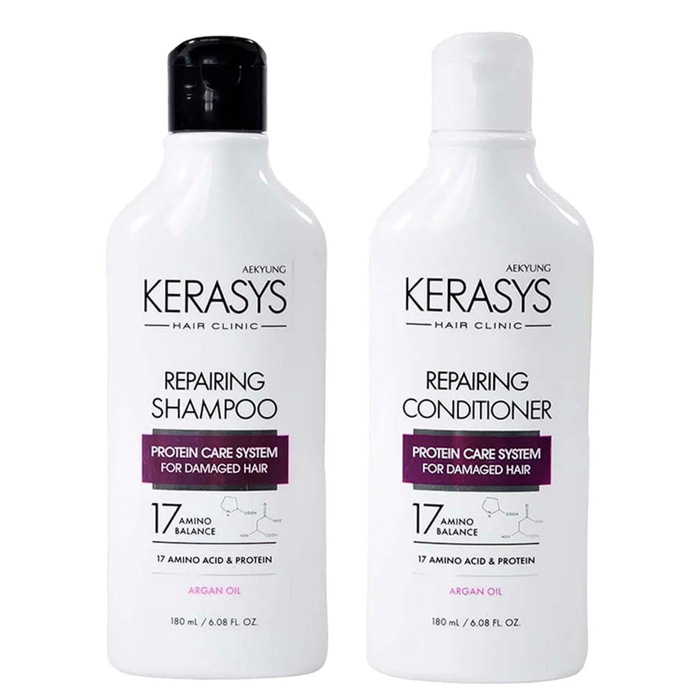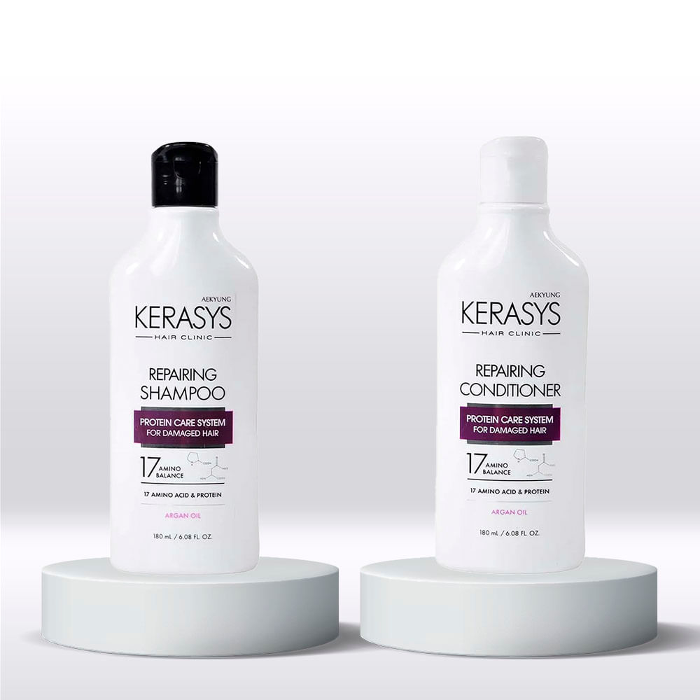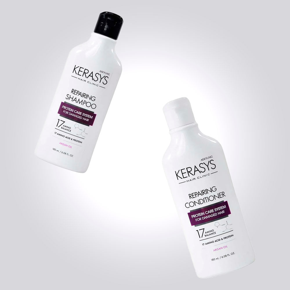 Indicado para quem deseja tratar cabelos sem vida, frágeis ou com excesso de oleosidade, o Kerasys Repairing Kit equilibra o pH, fortalece a estrutura capilar e proporciona um aspecto renovado desde o primeiro uso.