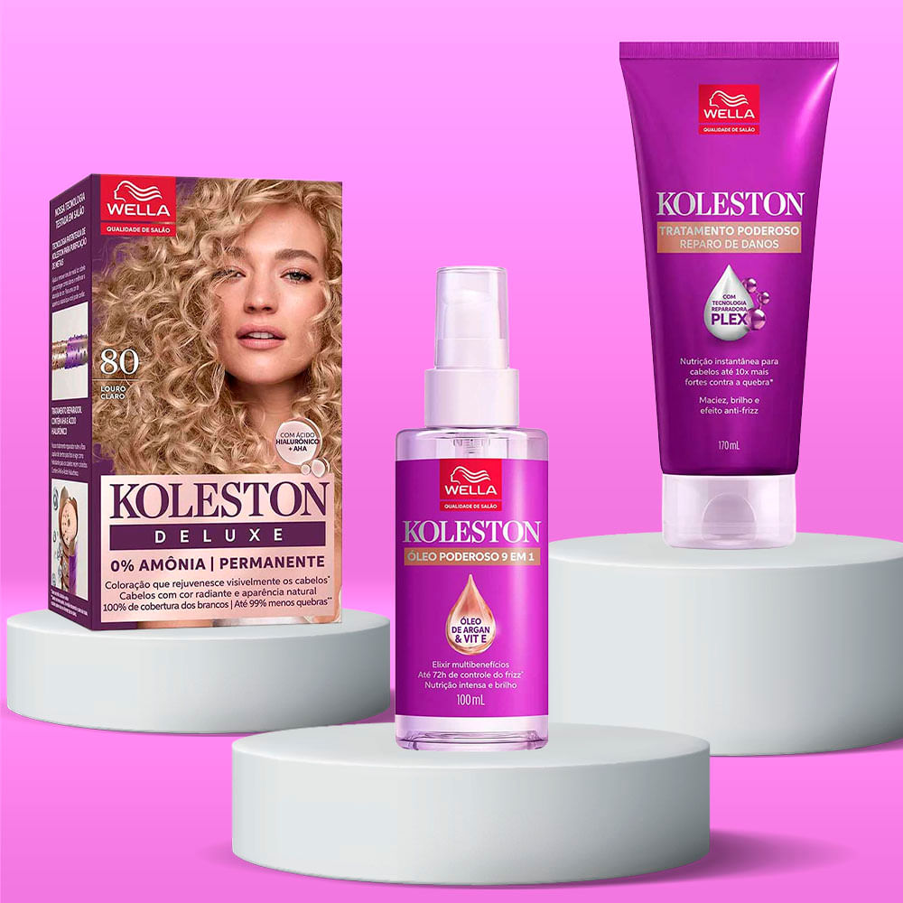 Koleston Poderoso Kit – Coloração Deluxe Louro 8.0 + Tratamento + Óleo Capilar