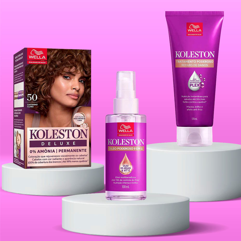 Koleston Poderoso Kit – Coloração Deluxe Castanho Claro 5.0 + Tratamento + Óleo Capilar