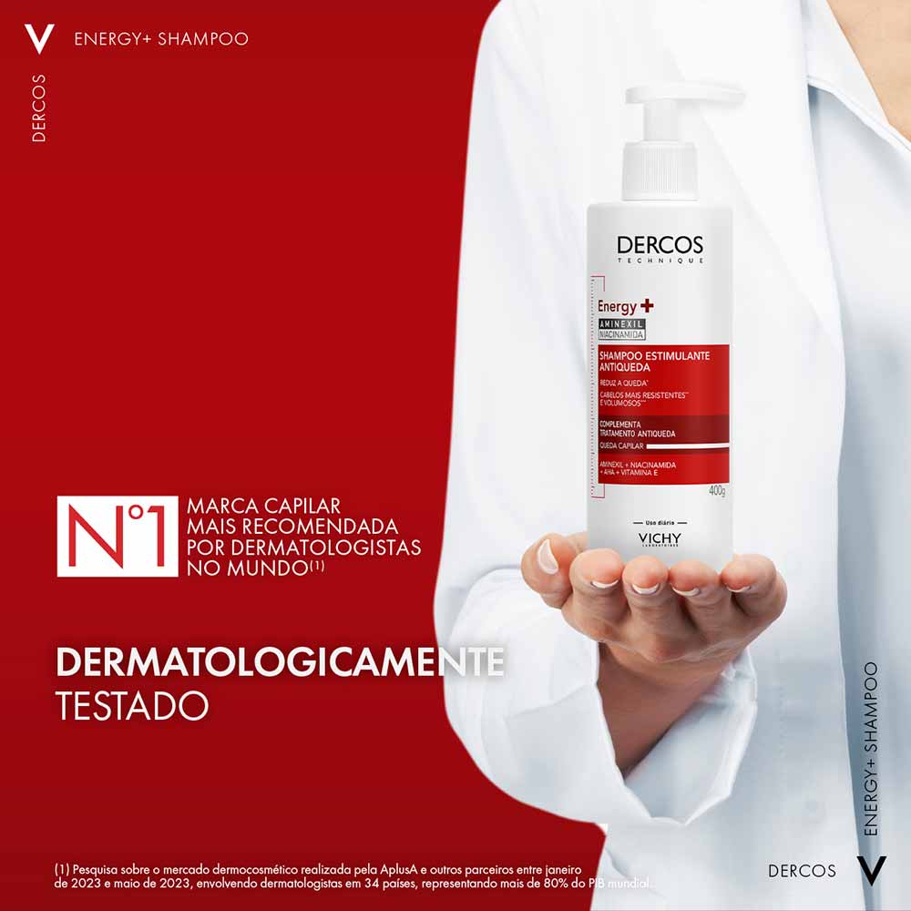 Shampoo Estimulante Antiqueda para Cabelos Fracos e Quebradiços, Fortalece os Fios, Vichy Dercos Energy+