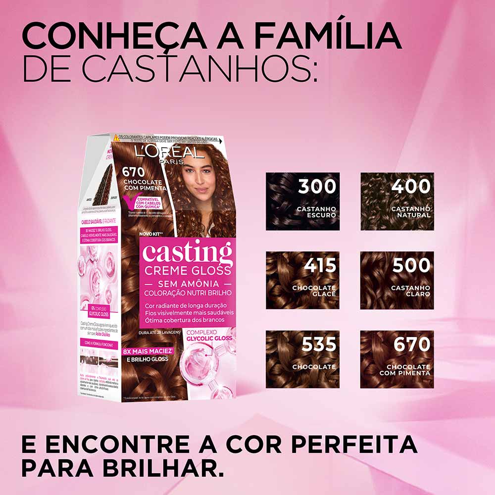 A Coloração Casting Creme Gloss L'Oréal Paris é uma solução inovadora para quem busca mudar a cor dos cabelos sem comprometer a saúde dos fios. Este produto oferece uma coloração sem amônia, proporcionando um brilho gloss irresistível e cuidando intensamente da fibra capilar. Ideal para aqueles que desejam realçar ou transformar sutilmente a cor natural do cabelo, este creme colorante garante resultados deslumbrantes sem ressecar os fios.