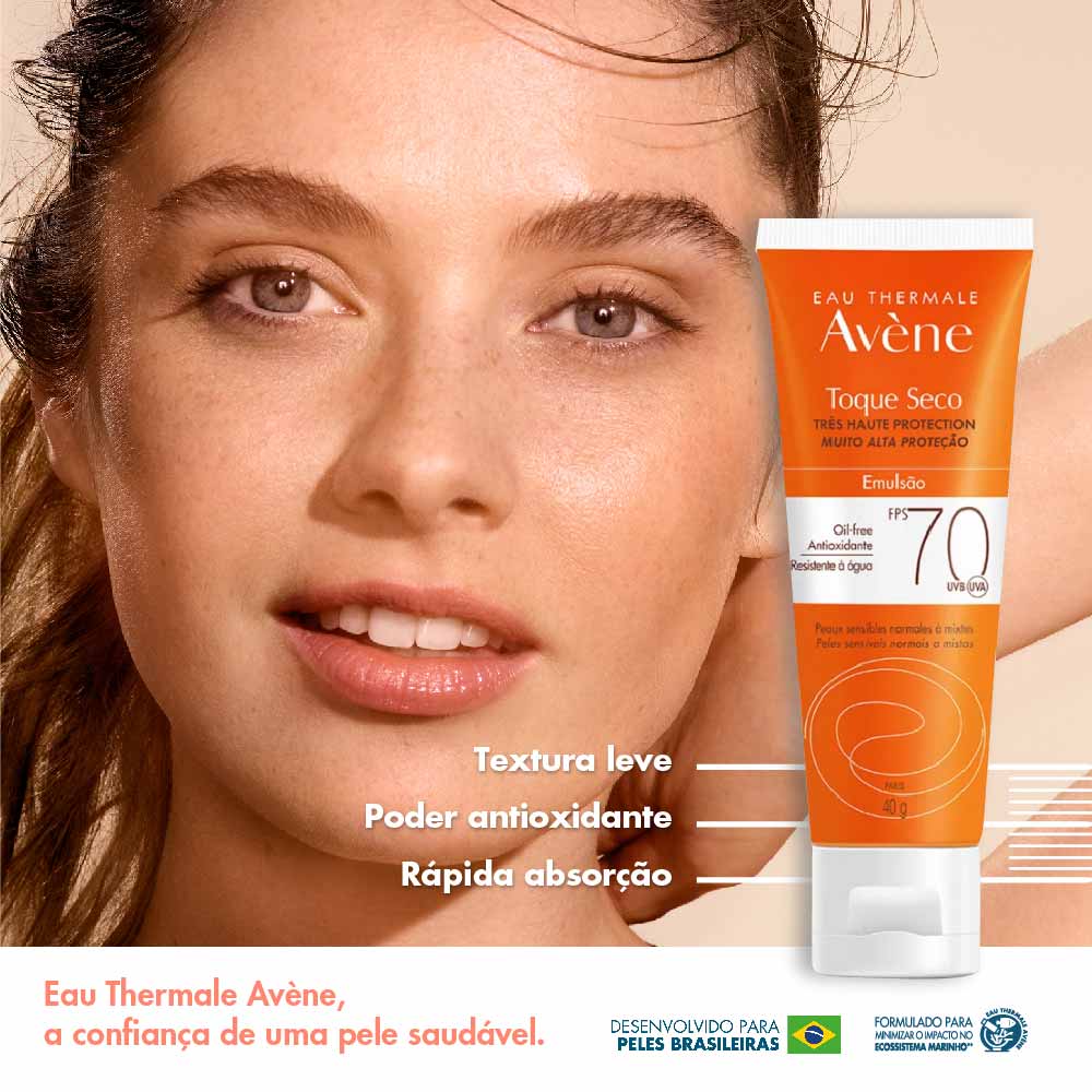 Protetor solar para peles extremamente sensíveis a queimaduras solares, mistas a oleosas. A Emulsão FPS 70 Toque Seco assegura uma ampla cobertura do espectro UV graças a associação exclusiva de ativos SunSitive, fruto da pesquisa dos Laboratórios Pierre Fabre. Seu complexo fotoprotetor, aliado a uma cosmética desenvolvida para a pele brasileira, garante uma maior proteção frente aos raios UVB assim como aos UVA curtos e longos. O Pré-tocoferil, precursor da vitamina E (antioxidante) protege as células da ação dos radicais livres. Sua fórmula rica em Água Termal Avène possui propriedades calmantes e suavizantes. Modo de Usar: Aplique a Emulsão FPS 70 Toque Seco uniformemente sobre a pele antes da exposição solar e sempre que necessário. Reaplicar sempre, após sudorese intensa, nadar ou banhar-se, secar-se com toalha e durante a exposição ao sol. É necessária a reaplicação do produto para manter a sua efetividade. Ajuda a prevenir queimaduras solares. Esse produto foi formulado de maneira a minimizar possível surgimento de alergia. A Marca A história da marca Eau Thermale Avène começa em 1736, na França. Conta a lenda que um cavalo com uma grave doença de pele foi conduzido até uma nascente de água, alcançando a cura. Assim foram descobertas, e depois comprovadas cientificamente, as propriedades calmantes e antiinflamatórias da Água Termal de Avène. Em 1990 o grupo Pierre Fabre desenvolve os produtos para tratamento de todos os tipos de pele, até as mais sensíveis.