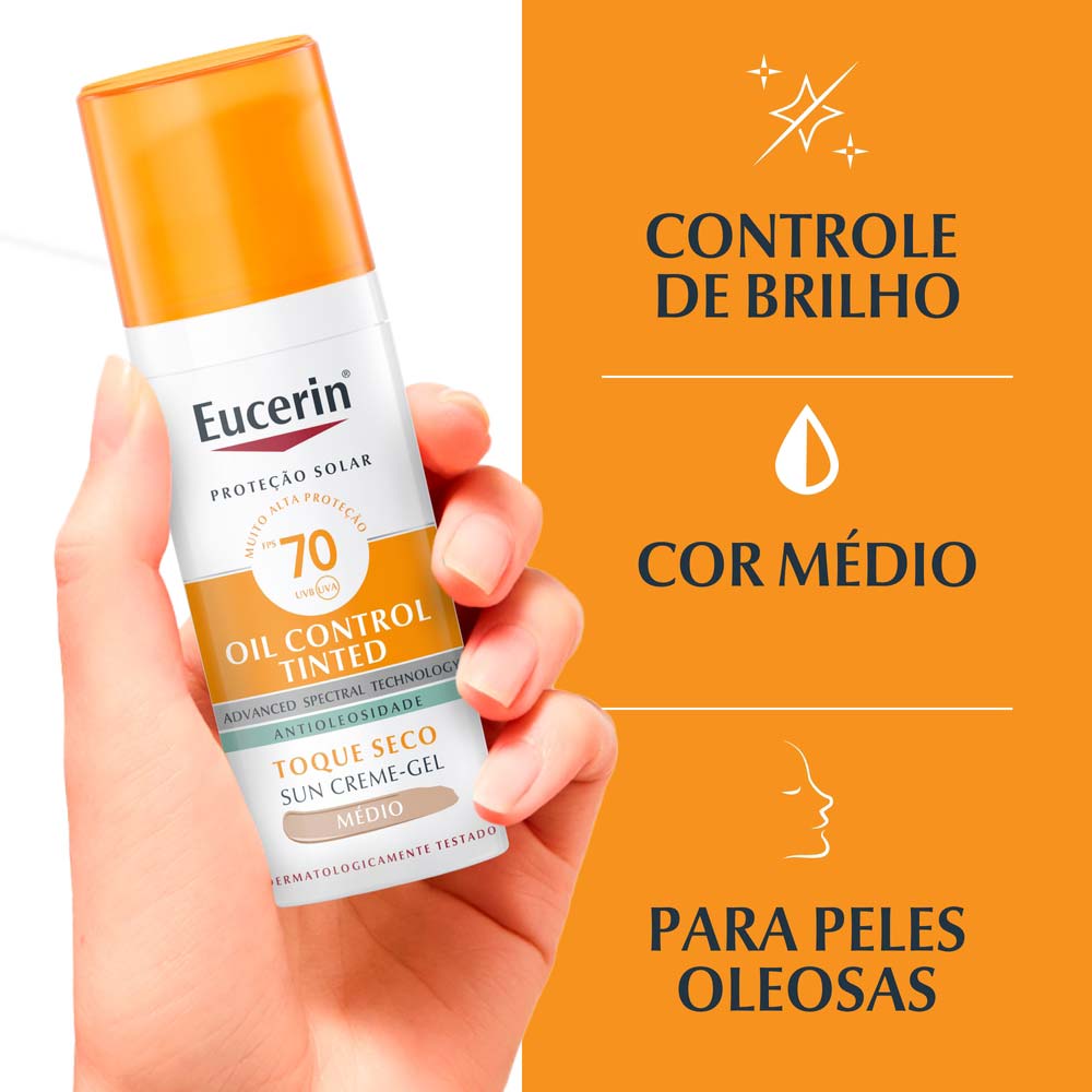 EUCERIN Protetor Solar Facial Oil Control FPS 70 Antioleosidade, Proteção UVA, UVB e Luz Visível, Pele Oleosa