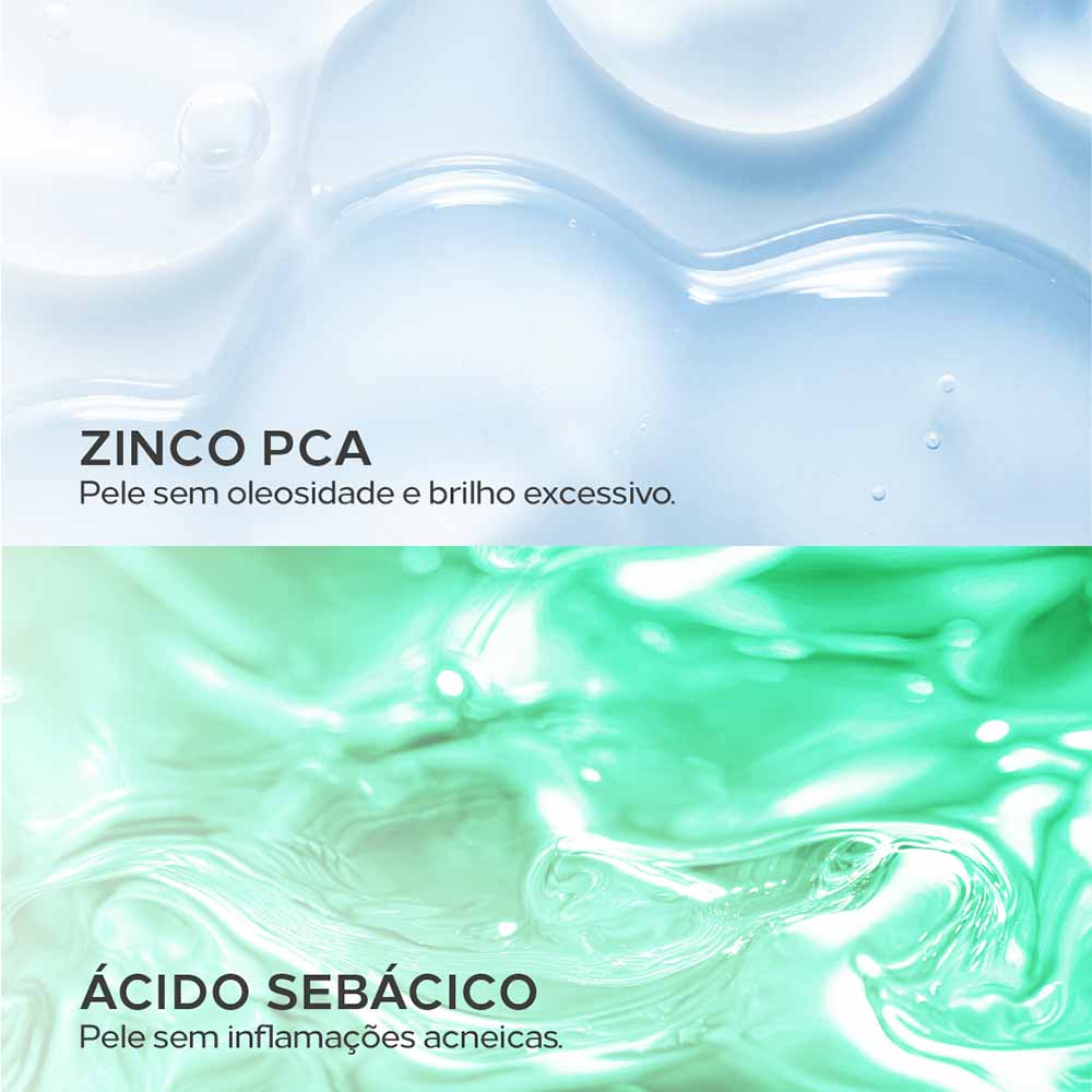 - Zinco PCA- ativo reconhecido pelo alto poder regulador da produção sebácea com efeito antibacteriano;