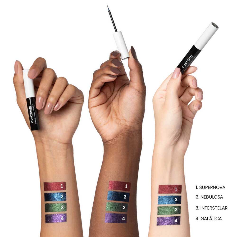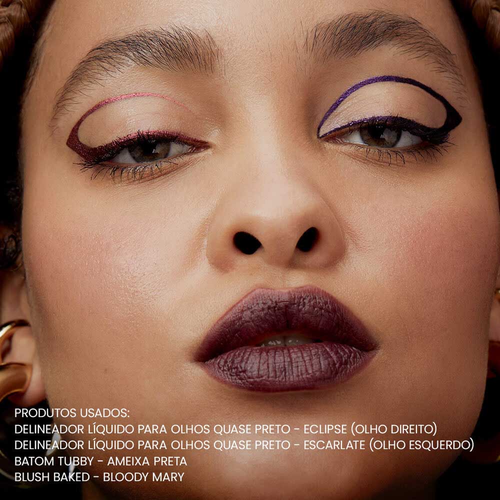 Um Delineador Líquido de ponta fina e colorido com nuances escuras e holográficas!