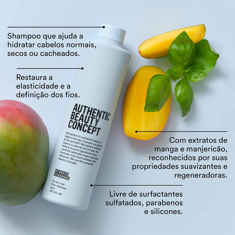 É um Shampoo com consistência 100% transparente, visualmente tão claro como a água, sublinhando o efeito hidratante no cabelo. Purifica sem agredir e devolve a elasticidade dos fios. Possui formulações veganas e enriquecidas com Pantenol, proporcionando mais flexibilidade e maciez aos fios. Indicado: Para cabelo seco. Benefícios: Hidrata o cabelo normal a seco ou cacheado e devolve a elasticidade e flexibilidade. Sem parabenos e silicones. Modo de uso: Aplicar no cabelo molhado, na raiz e comprimento e massagear suavemente. Deixar agir de 1 a 2 minutos. Enxaguar abundantemente. Somos certificados pela PETA Estamos orgulhosos de ser oficialmente certificados pela PETA e continuaremos a apoiar o compromisso da nossa marca de fornecer fórmulas veganas para cuidados com o cabelo e estilo. Sobre a marca: A Authentic Beauty Concept é uma marca que acredita na beleza autêntica de cada pessoa. Cocriada em parceria com os melhores cabeleireiros e artistas que compartilham os mesmos valores. Seus produtos apresentam fórmulas ricas em ativos naturais, extraídos através de tecnologia que preserva seus principais benefícios. Destaque suas características e valorize o que é de mais bonito e único em você, afinal, para Authentic Beauty Concept , beleza não é um valor universal, mas abraçar o seu estilo autêntico e individual.
