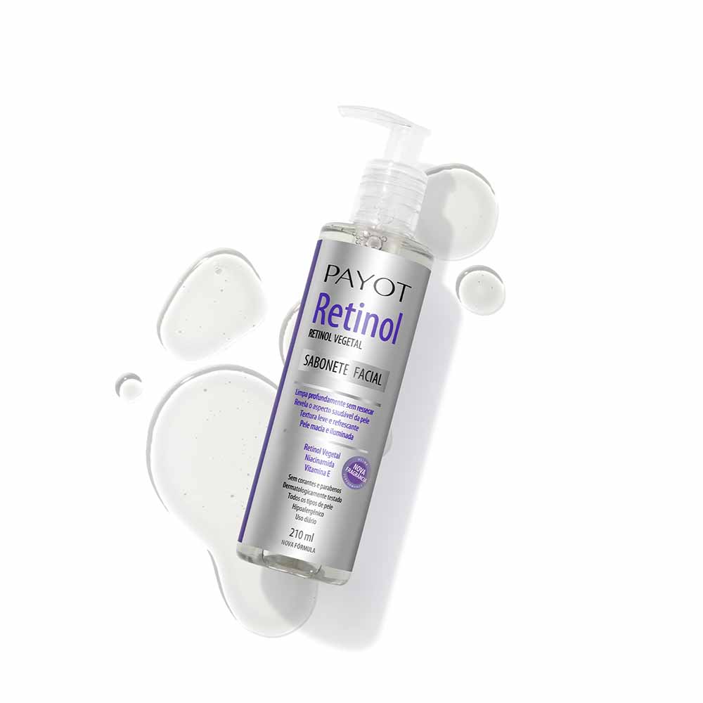 O Sabonete Facial Retinol Payot limpa profundamente sem ressecar a pele. Sua fórmula revitalizante minimiza a oleosidade. Mantém a pele macia e iluminada ao longo do dia. A combinação de Retinol Vegetal, Niacinamida e Vitamina E ajuda a hidratar, proteger e promover a aparência de uma pele renovada. Benefícios: Possui uma textura leve e espuma cremosa. Produto livre de parabenos e corantes. Utilizamos um ativo de origem vegetal (phyto-retinol), que não possui os efeitos adversos do retinol tradicional. Vegano. Não testado em animais. Precauções: Manter o produto bem fechado, em lugar seco, ao abrigo da luz direta e longe do calor excessivo. Este produto foi formulado de maneira a minimizar possível surgimento de alergia. Descontinuar o uso em caso de sensibilização. Manter fora do alcance de crianças. Modo de Uso: Diariamente pela manhã e à noite, aplicar no rosto úmido massageando em movimentos circulares. Enxágue em abundância. Uso externo.