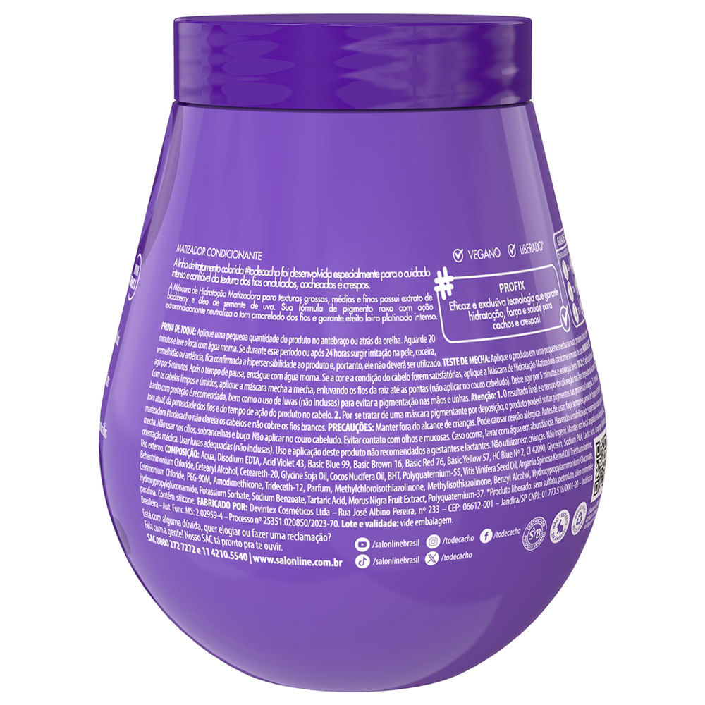 A Máscara Condicionante Matizadora #todecacho Loira é um produto essencial para quem possui cabelos loiros e deseja mantê-los radiantes e saudáveis. Esta máscara de tratamento foi especialmente desenvolvida para oferecer uma carga extra de hidratação, maciez e controle do frizz. Ideal para cabelos ondulados, crespos e cacheados, ela neutraliza os tons amarelados indesejados, proporcionando um loiro mais luminoso e uniforme. É indicada para pessoas acima de 12 anos e é uma excelente opção para quem deseja cuidar dos cabelos de forma prática e eficiente.
