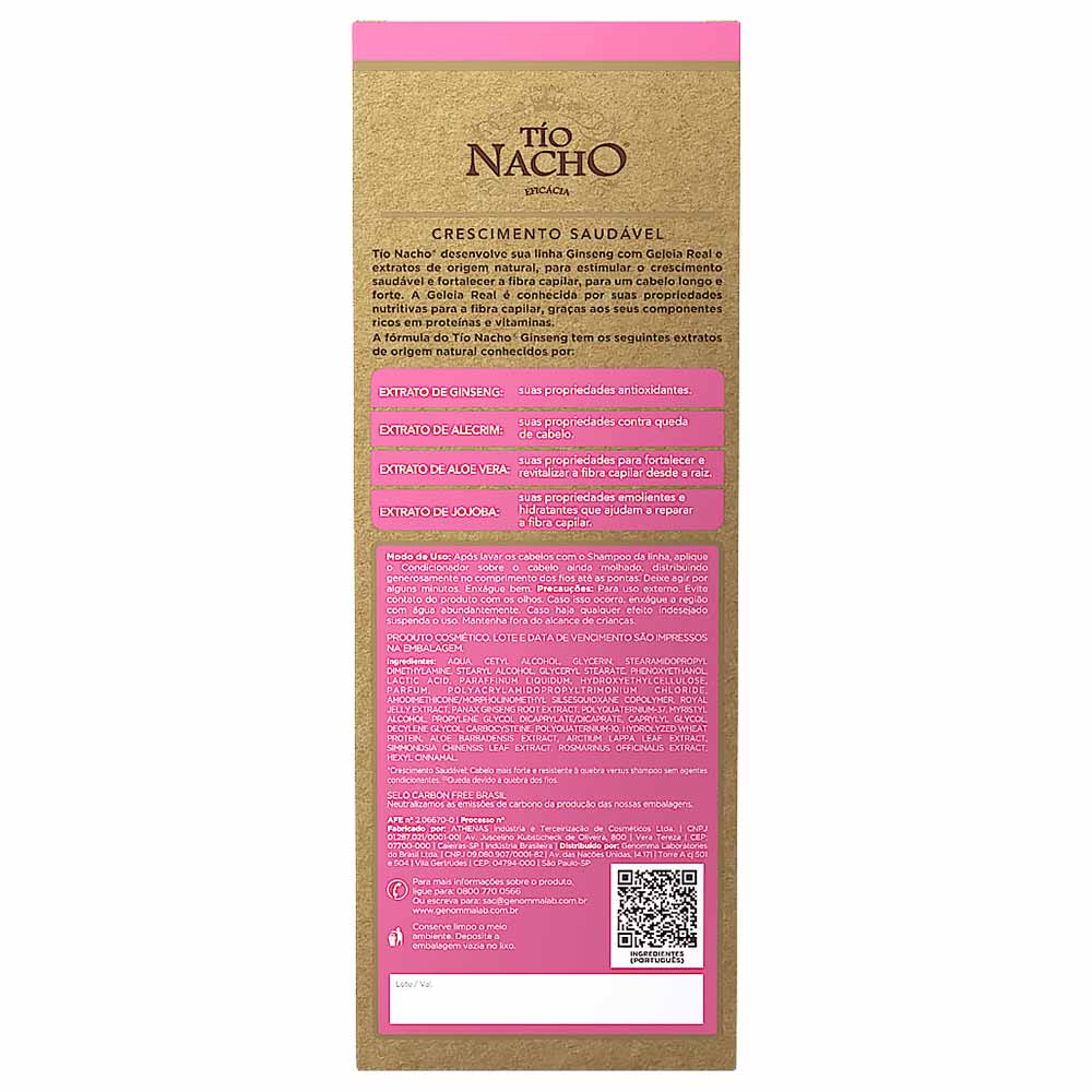 A linha Tío Nacho Ginseng promove um crescimento mais saudável dos cabelos, ajudando a fortalecer e revitalizar os fios. Com Geleia Real e Extrato de Ginseng, esta fórmula exclusiva proporciona cabelos mais fortes, resistentes e com brilho natural. A combinação desses ingredientes naturais ajuda a nutrir os cabelos, fortalecendo-os desde a raiz até as pontas. Com o uso regular, a linha Tío Nacho Ginseng ajuda a promover cabelos longos, saudáveis e radiantes.