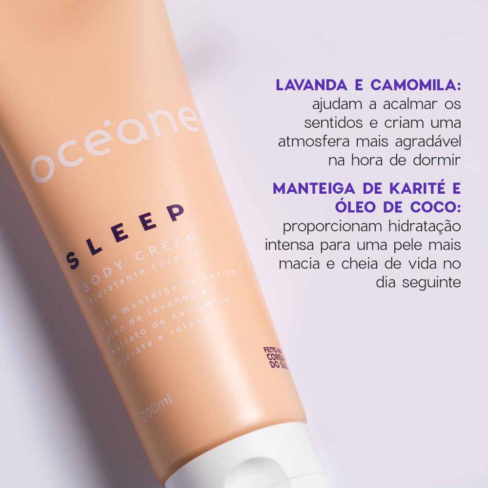 O Cream é um hidratante corporal noturno formulado para proporcionar uma experiência de relaxamento completa antes de dormir. Ele serve para hidratar profundamente a pele enquanto seus ativos naturais ajudam a criar um ambiente propício para o descanso, aliviando o estresse e promovendo a tranquilidade. Com ingredientes cuidadosamente selecionados, o Sleep Body Cream é mais do que um simples hidratante é uma verdadeira terapia noturna que cuida do seu corpo e mente.
