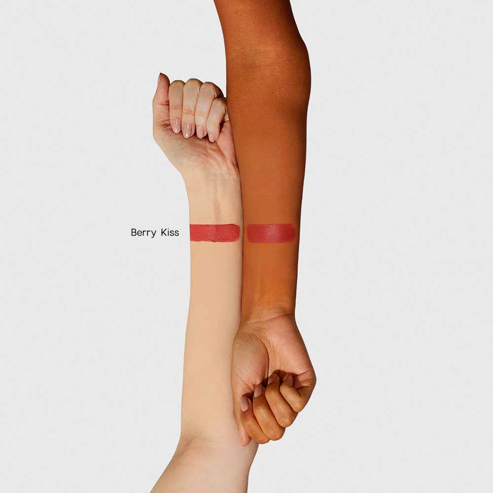 A cor Berry Kiss é um tom avermelhado versátil que se adapta perfeitamente a diferentes tons de pele, garantindo uma aparência saudável e radiante.