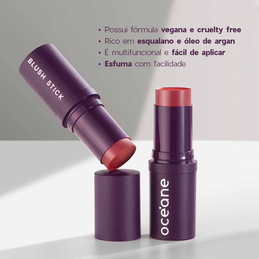 O Blush em Bastão Vermelho Océane é o aliado perfeito para quem busca praticidade e um acabamento impecável na maquiagem.