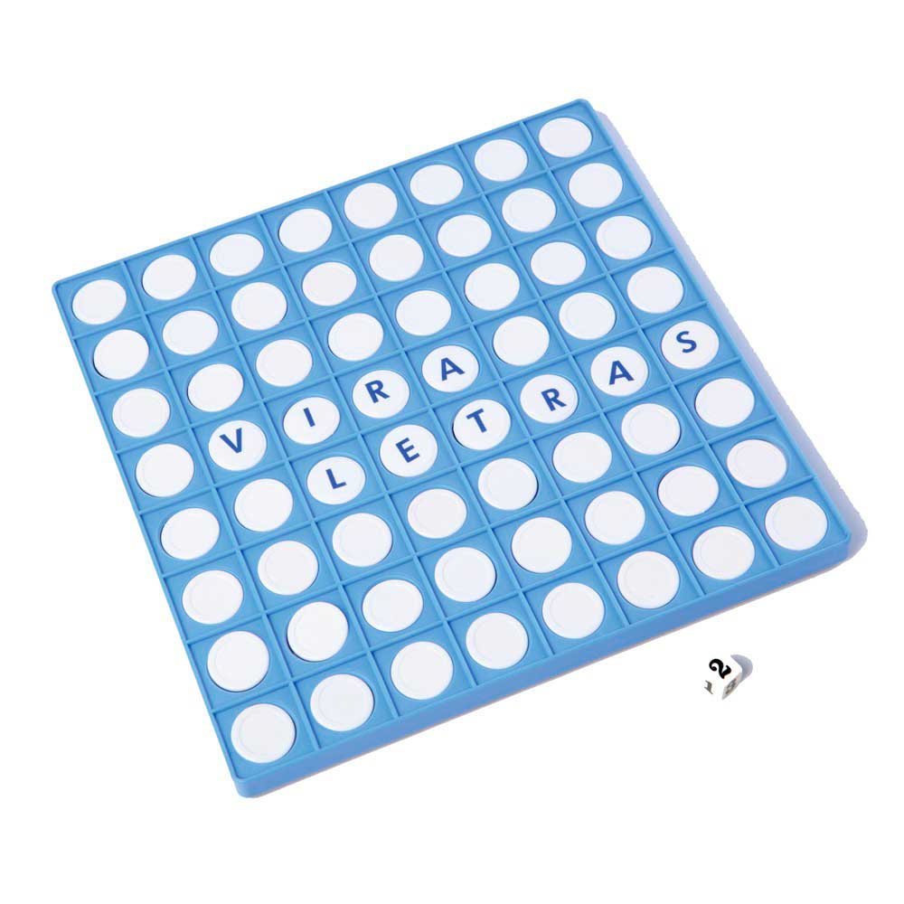Vire o número de discos tirados no dado e tente formar palavras com eles. Neste jogo, vence quem tiver escrito mais palavras com os discos.