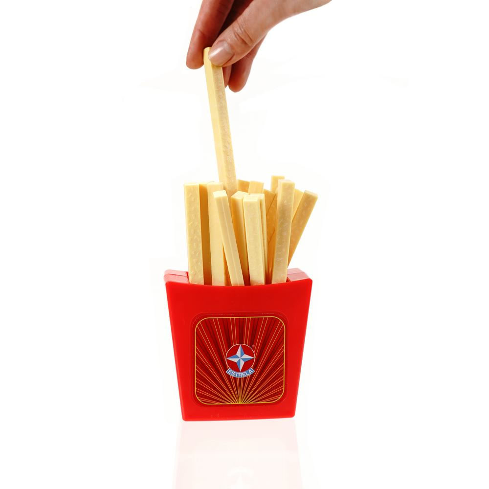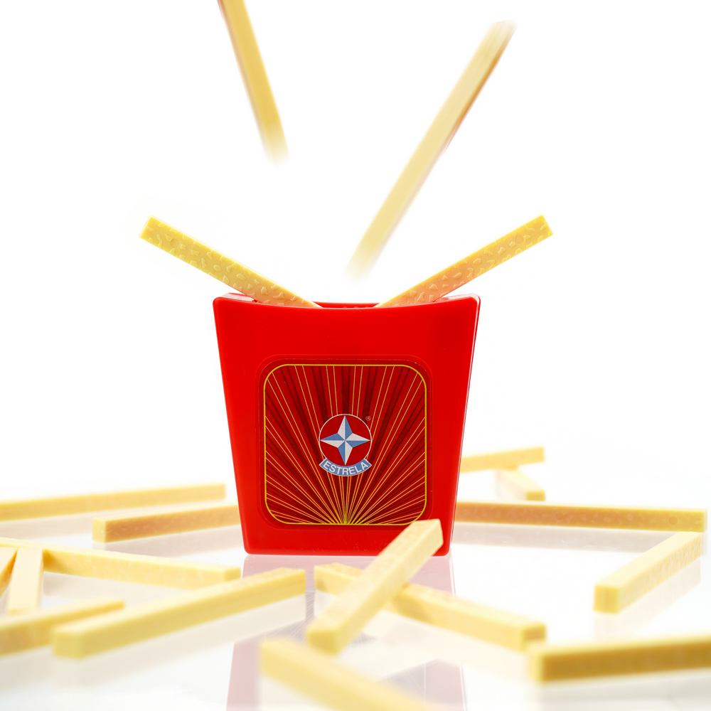 Coloque todas as batatinhas fritas dentro do saquinho. Depois, comece a tirar uma a uma. Se você puxar a batatinha errada, todas as outras pulam também! Junte os amigos e faça rodadas para ver quem consegue ficar mais tempo sem deixar a batatinha pular!